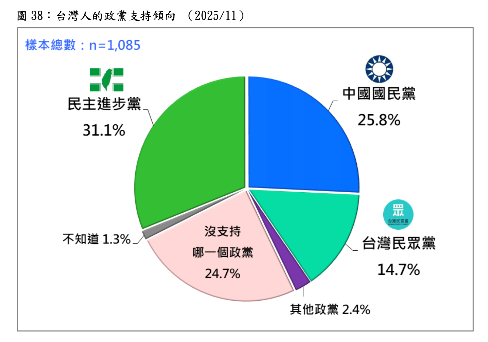 圖38:台灣人的政黨支持傾向 (2025/11)。台灣民意基金會提供