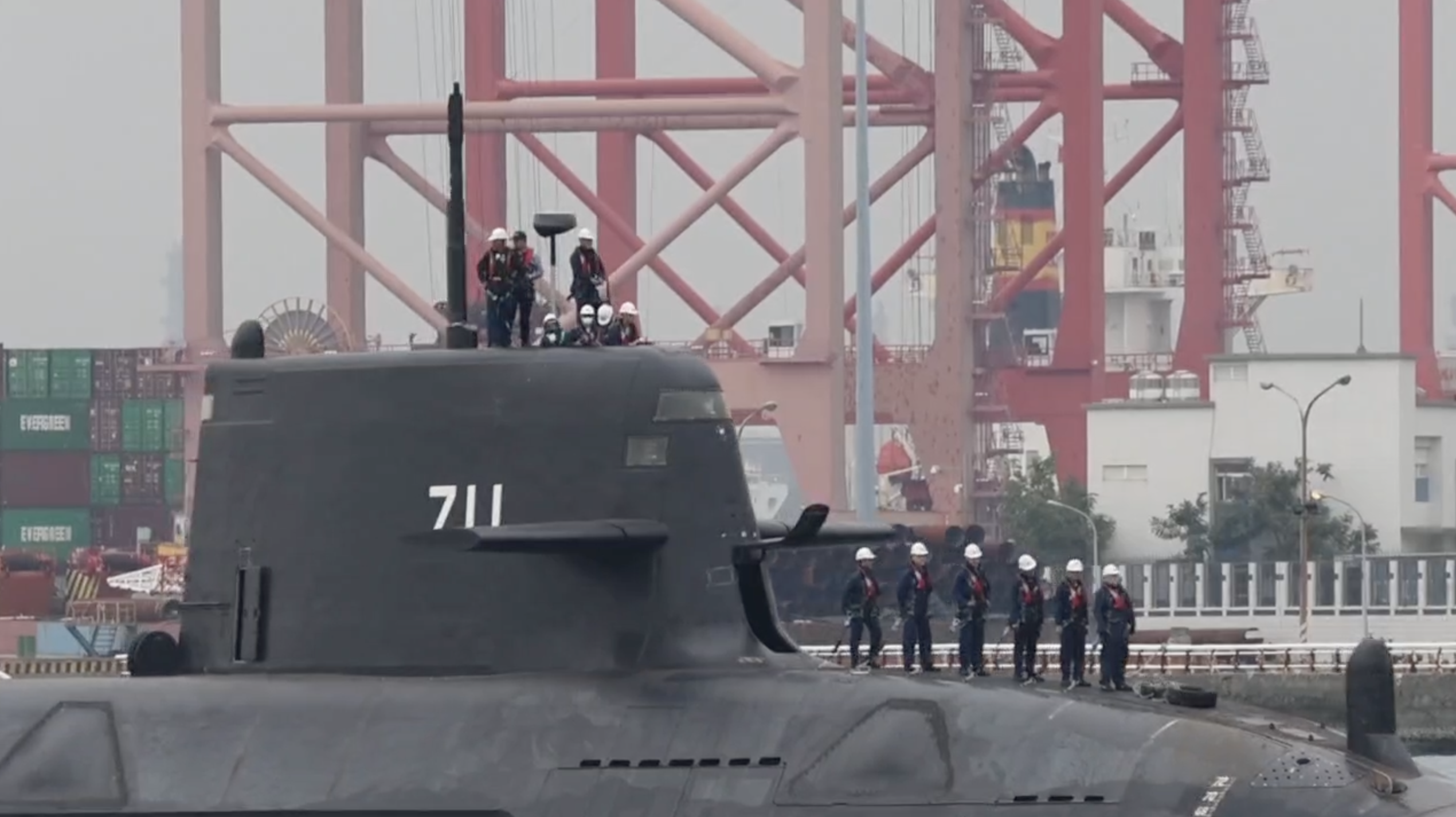 國造潛艦(IDS)首艘原型艦海鯤潛艦(舷號711)2025.11.27第4度出海測試,可見海軍與台船等團隊人員於帆罩頂端瞭望,海軍256戰隊人員亦參與測試。諸葛風雲提供