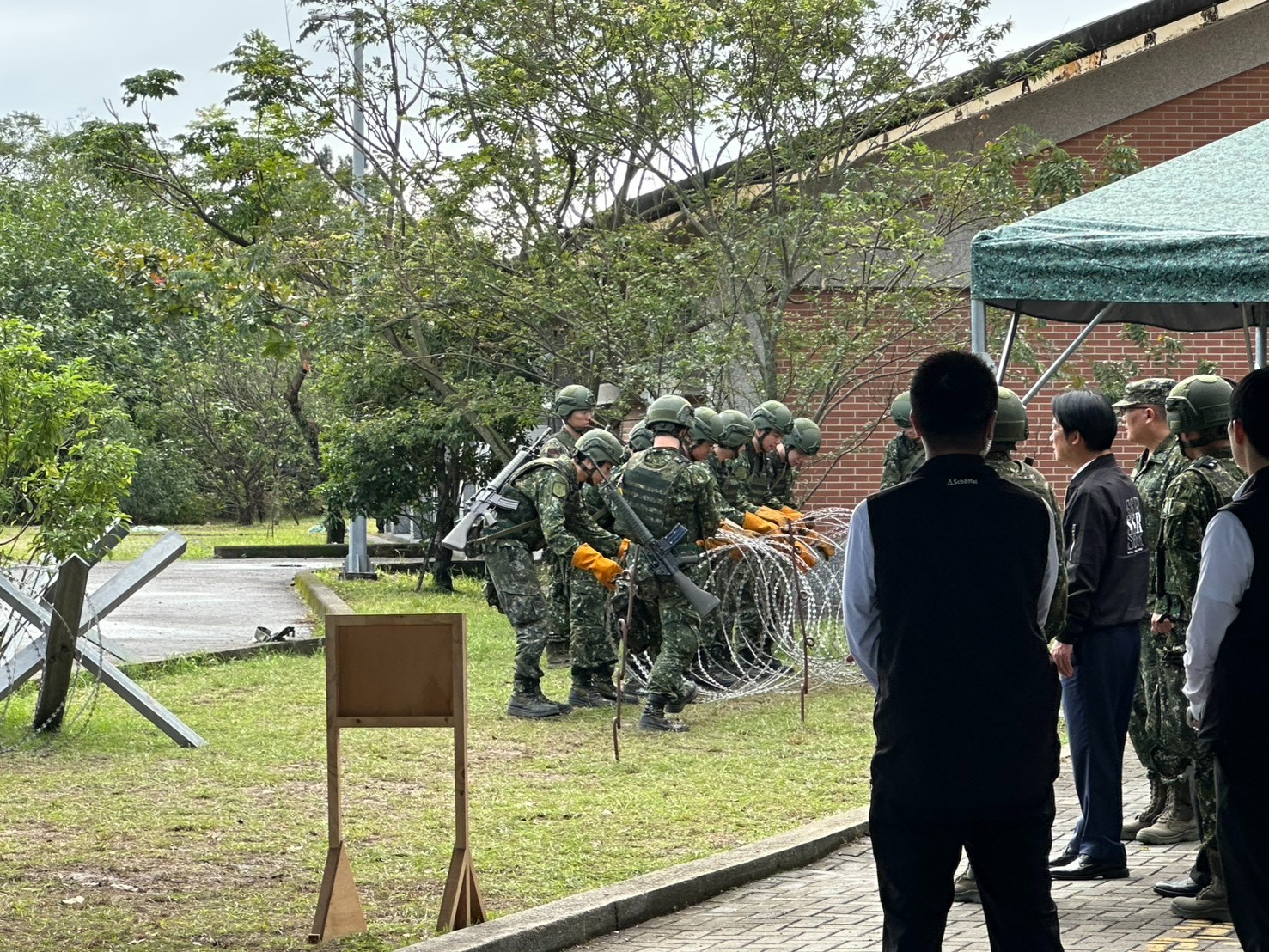 賴清德今上午視導宜蘭縣後備旅步三營教育召集部隊,作戰計劃演練,包括無人機操作演練、阻絕設置訓練、小部隊戰鬥訓練,並進行勗勉、頒發加菜金。