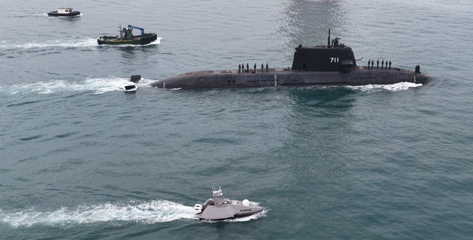 國造潛艦(IDS)首艘原型艦海鯤號2025.11.28第5度出海進行浮航測試。台船提供