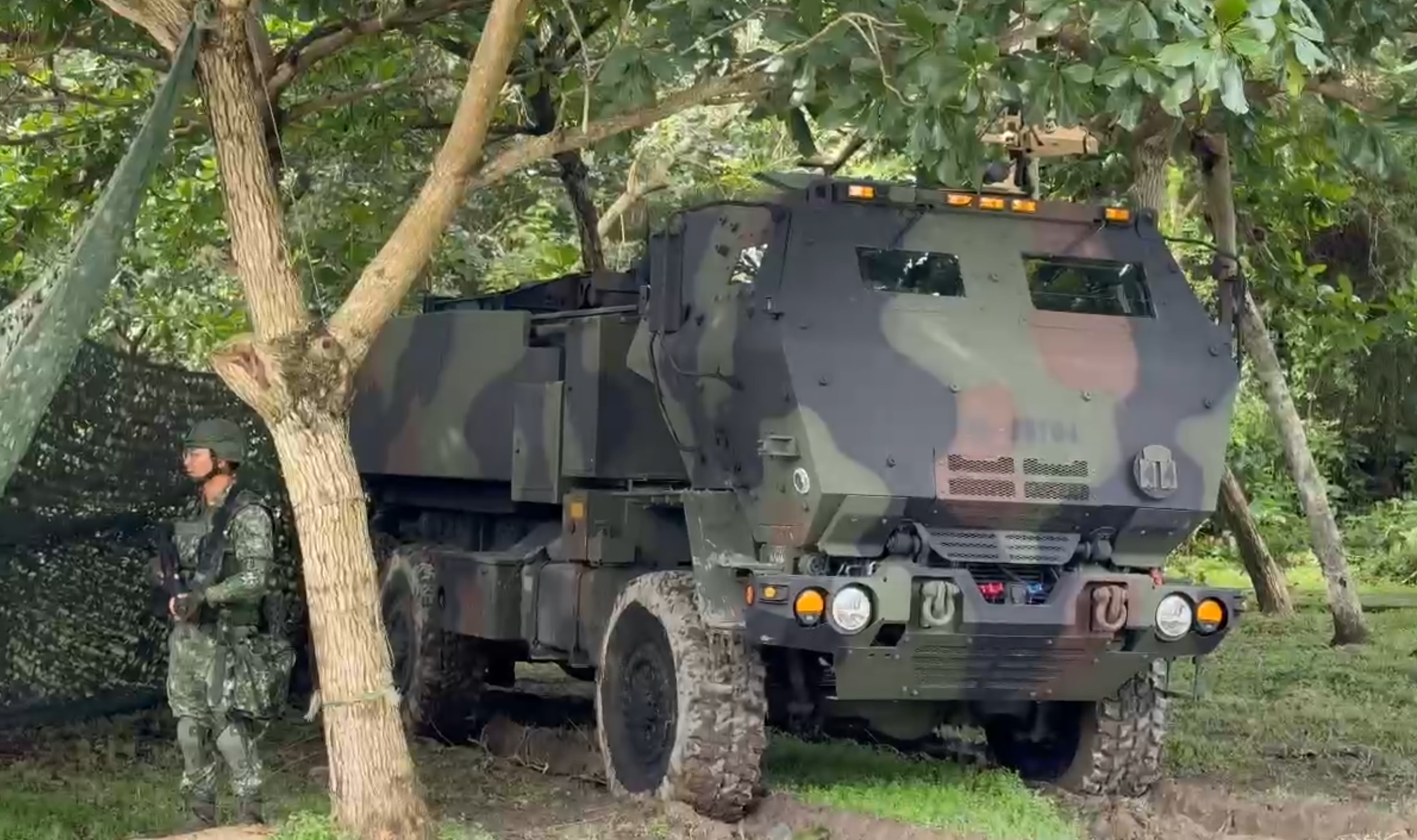 2025年5月12日,陸軍58砲指部於屏東九鵬基地實彈射擊海馬士(HIMARS)多管火箭武器系統。美聯社