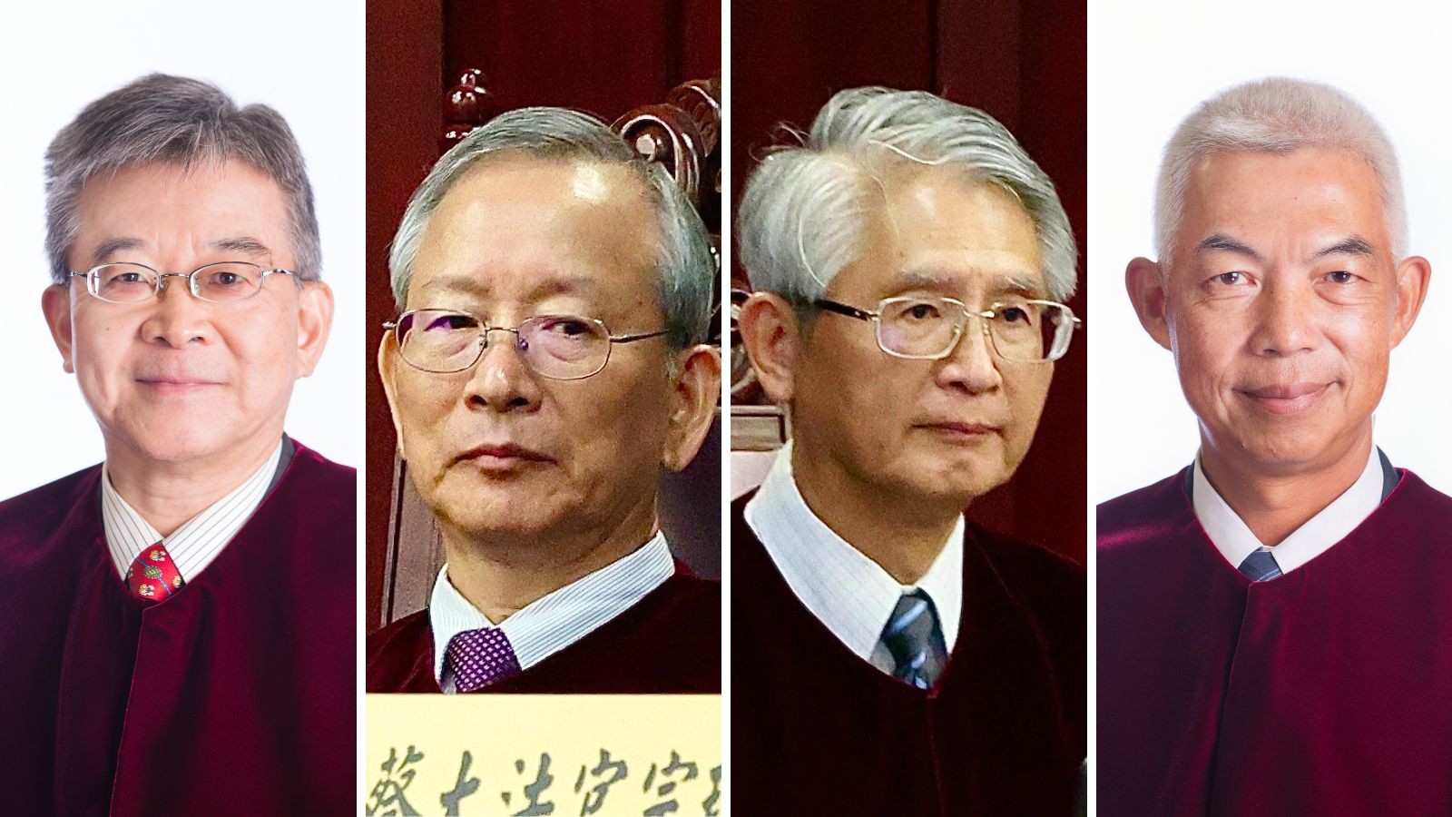 大法官(左起)陳忠五、呂太郎、謝銘洋、尤伯祥日前表態,認為修正後憲訴法封鎖大法官憲法解釋權,不應適用。本報資料照及司法院提供