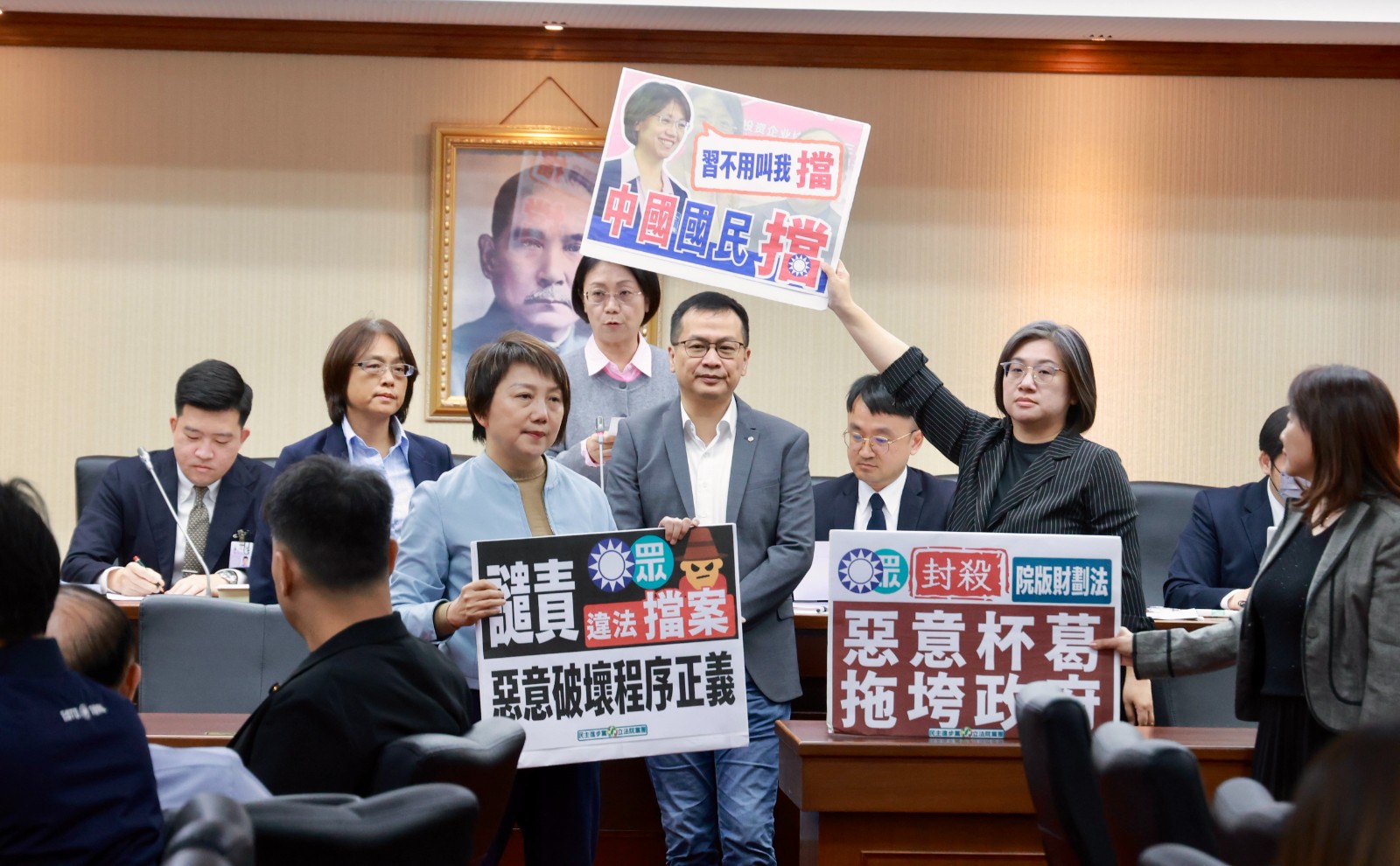 強化防衛韌性及不對稱戰力計畫採購特別條例仍卡在立院程序委員會,未能排入議程,無法交付外交及國防委員會審查,資料照為召委翁曉玲主持會議,執政黨立委表達訴求希望爭取付委。李政龍攝