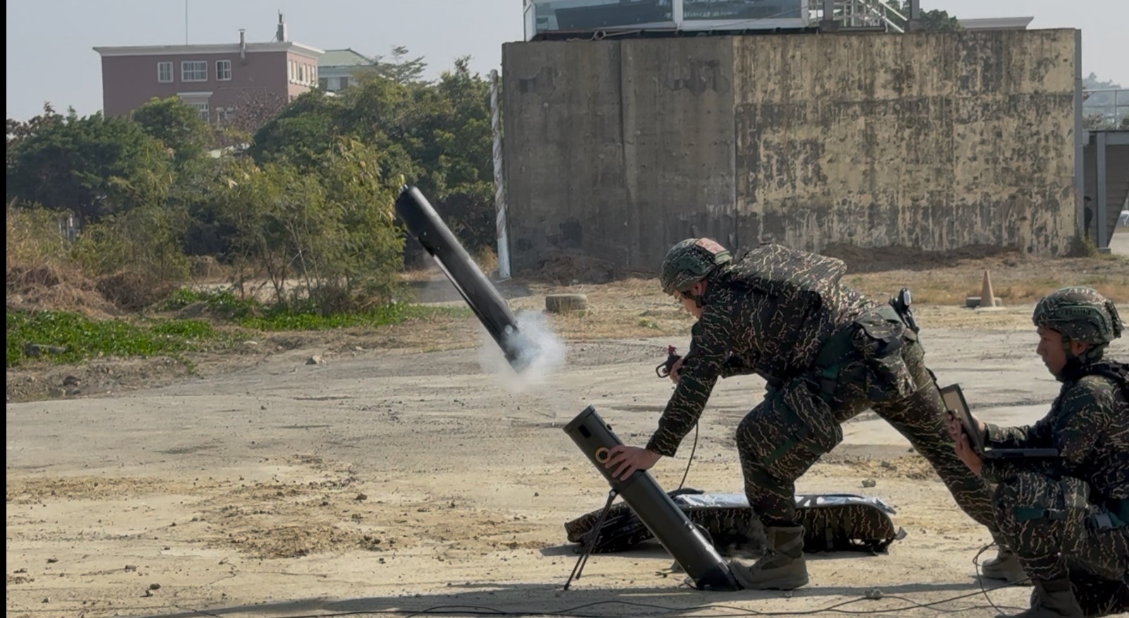 國軍春節戰備操演2026.1.29於左營舉行,海軍陸戰隊99旅發射「勁蜂1型」攻擊無人機,模擬對近岸敵軍發動精準打擊。郭宏章攝