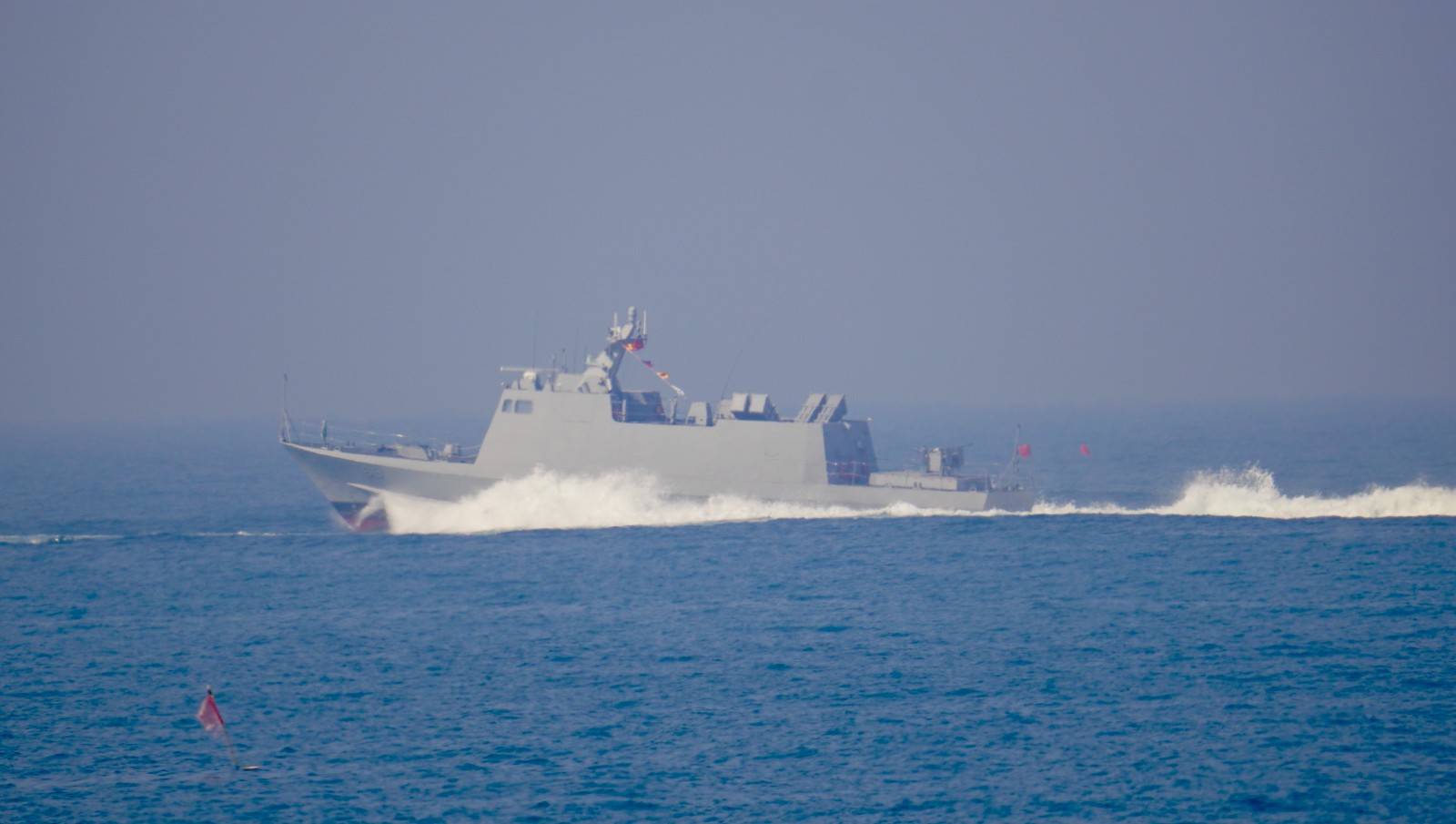 第二道防線是「中程攔截」(100公里內):若敵方倖存艦艇接近,光六艇在岸基雷達導引下,運用快速機動優勢,在濱海水域對敵進一步實施飛彈攻擊。