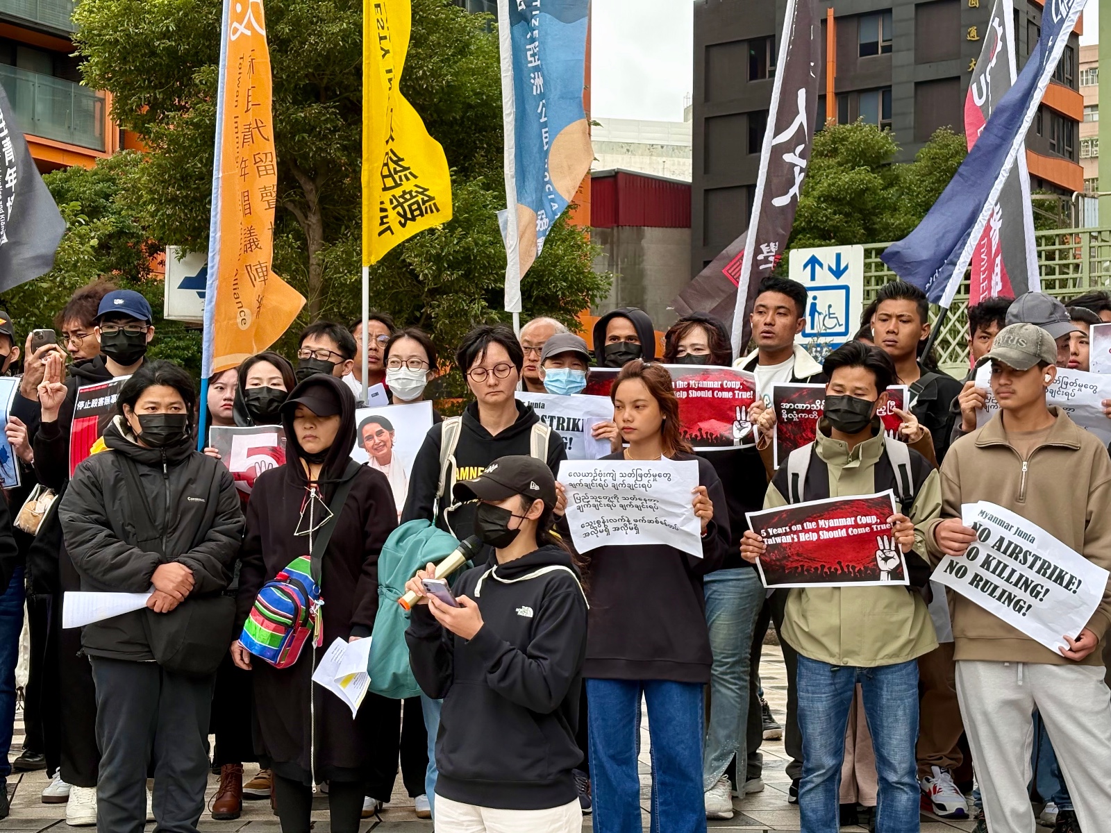 一位緬甸克欽族的在台緬甸學生戴著口罩現身,她表示,克欽族參與反抗軍事行動已經超過60年,即便她身在台灣,但仍擔心在緬甸的親友,憂心她在海外的行動影響他們的生命安全,「沒有人能保證我的未來,在軍事統治下,緬甸人的性命極其廉價。」她強調,台灣深知民主與自由的價值,這不只是緬甸的戰鬥,這是一場為了人性、正義與自由的奮鬥。