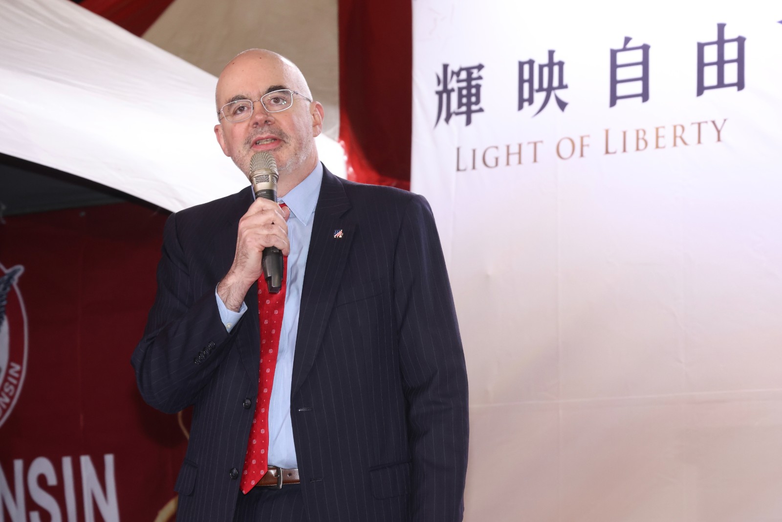美國在台協會在台北燈會花博園區設置花燈,AIT處長谷立言致詞。廖瑞祥攝