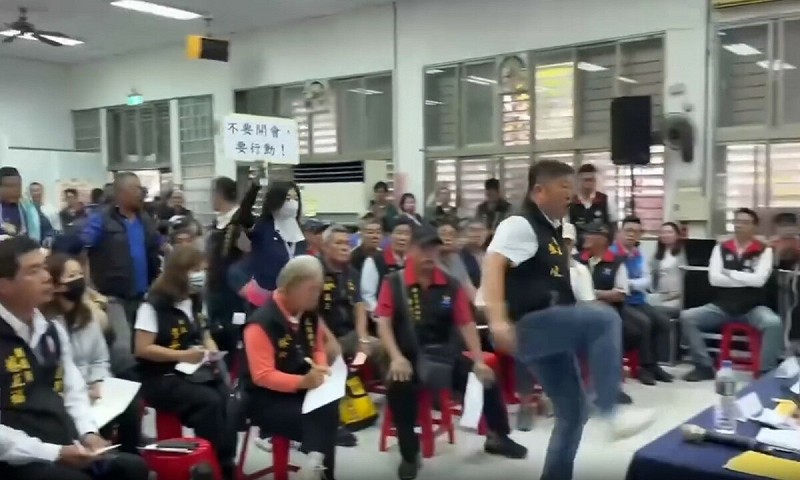 花蓮立委傅崐萁召開重建座談會,卻未邀請議長張峻附近居民,氣得張峻直接率隊衝入會場踹桌。翻攝畫面
