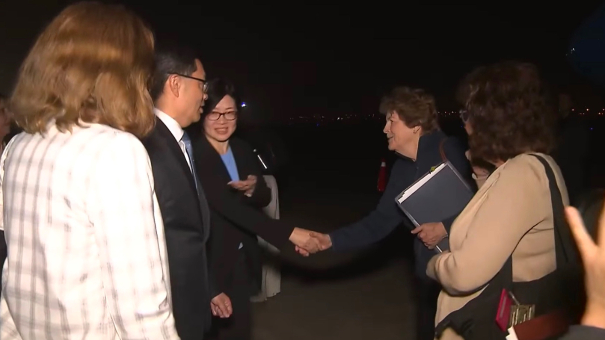 美國參議院外交委員會民主黨首席議員夏欣(Jeanne Shaheen)凌晨率團抵台。外交部提供