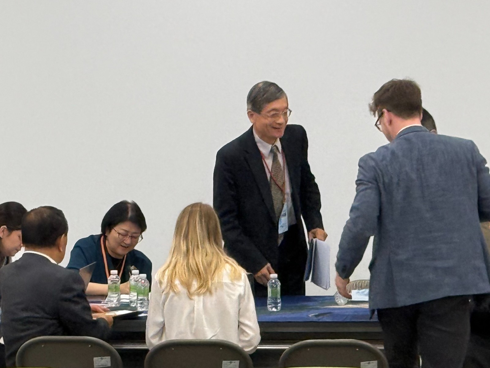政大財金系教授、前立委李桐豪(中,站立者)2026.4.16主持「2026 TTX政經軍心情勢推演」兵推經濟安全推演組主推官。左2為雷倩。郭宏章攝