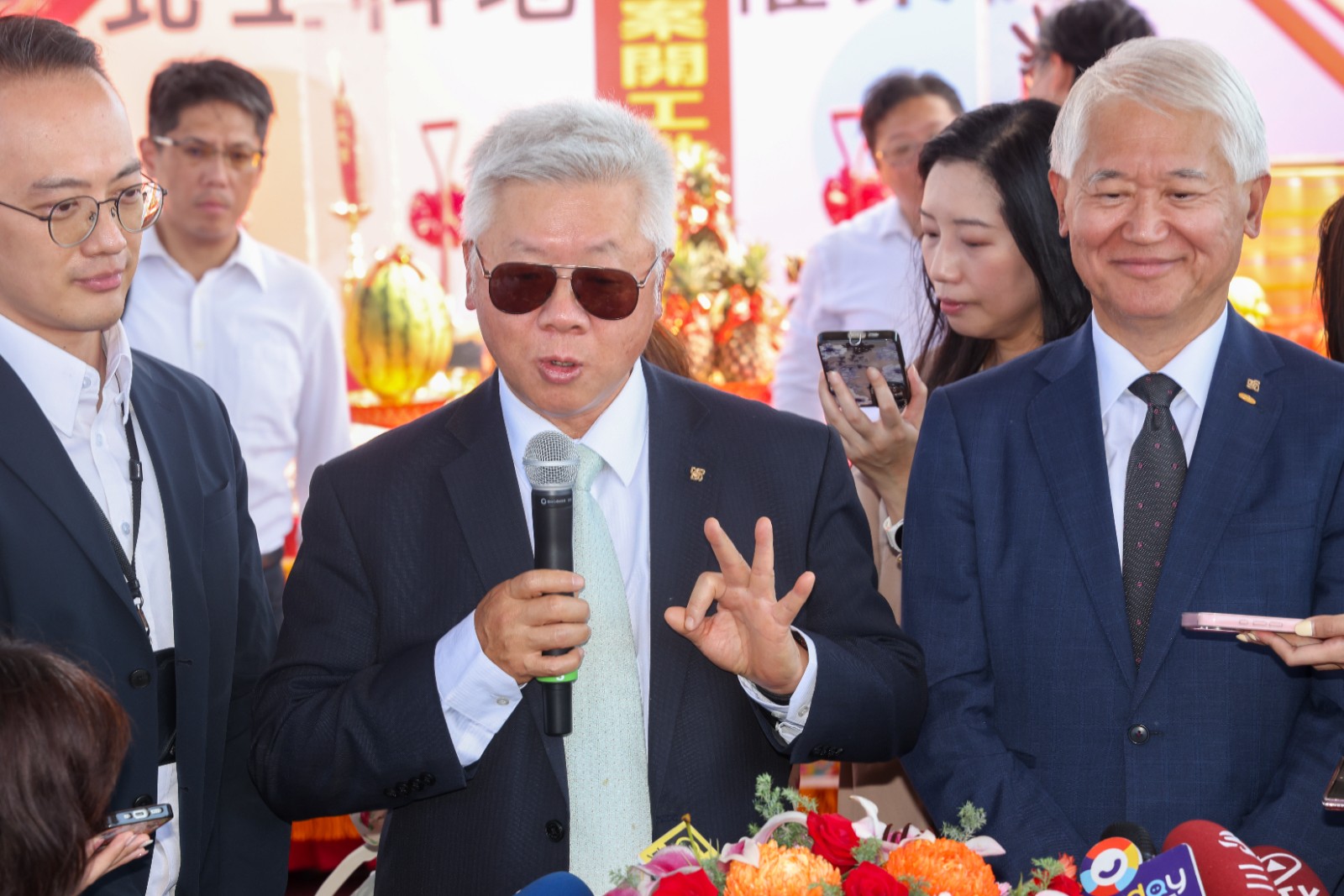 台新新光總經理林維俊(左)、新光人壽魏寶生(右)北士科動土後受訪。廖瑞祥攝