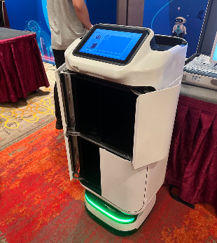 博鈞科技推出服務型機器人,可應用於送餐、物流、噴霧消毒等領域。戴嘉芬攝