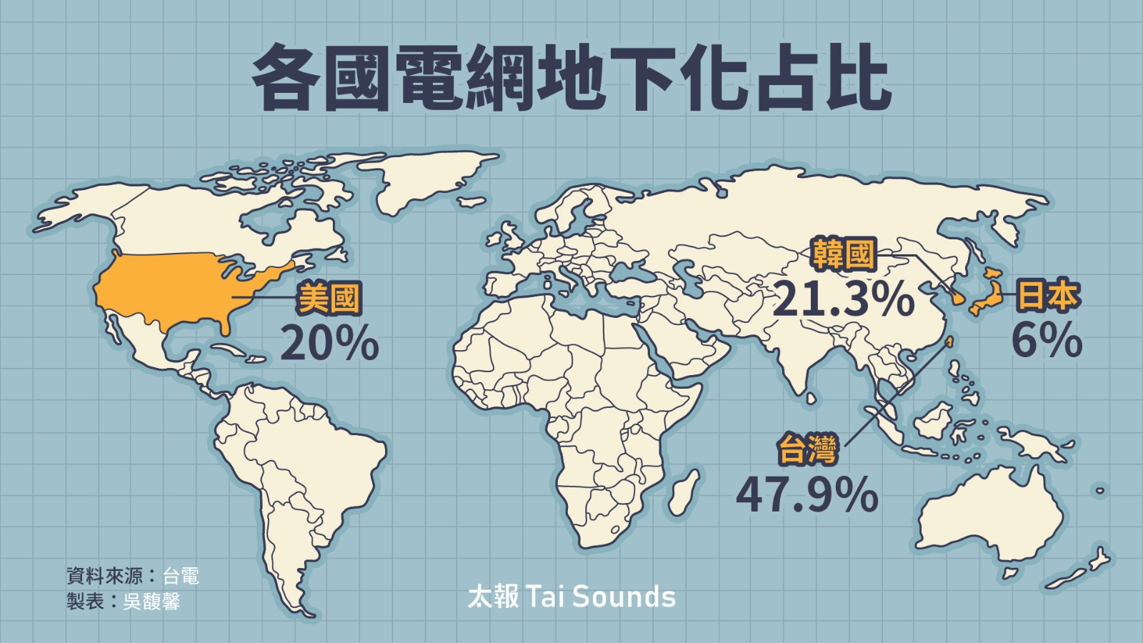 各國電網地下化占比。太報製圖