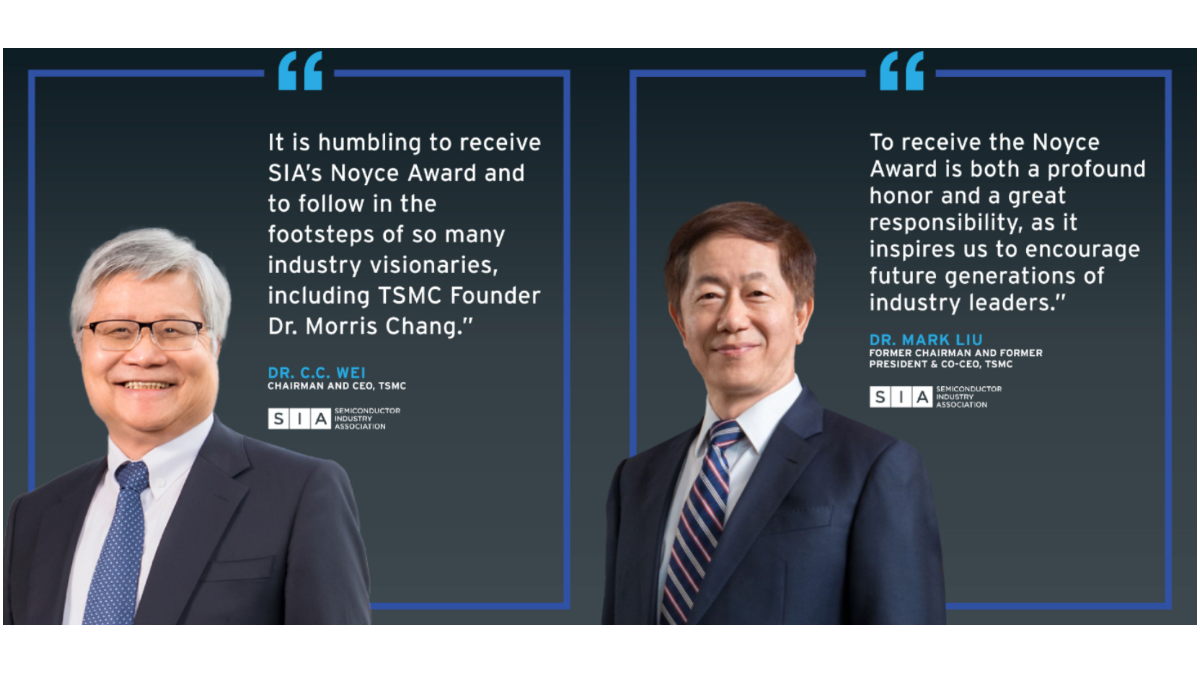 台積電董事長魏哲家與前董事長劉德音將獲得SIA頒發的半導體產業最高榮譽「諾伊斯獎」。SIA提供