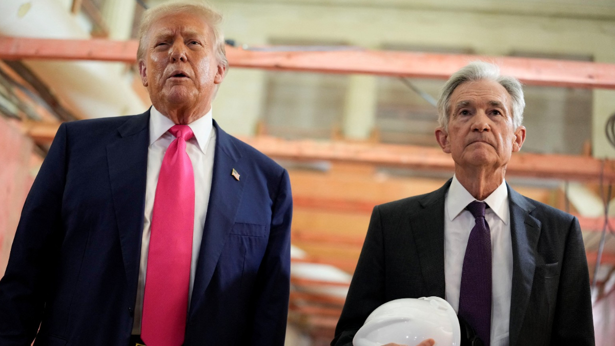 美國聯準會主席鮑爾(右)扛住總統川普施壓不降息。圖為2025年7月24日兩人視察聯準會大樓翻修工程。路透社