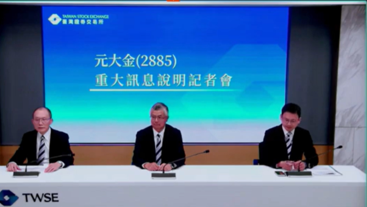 元大金舉行重大訊息說明記者會,將以5.2583股換1股元大投信,將其納為100%子公司。翻攝證交所YT