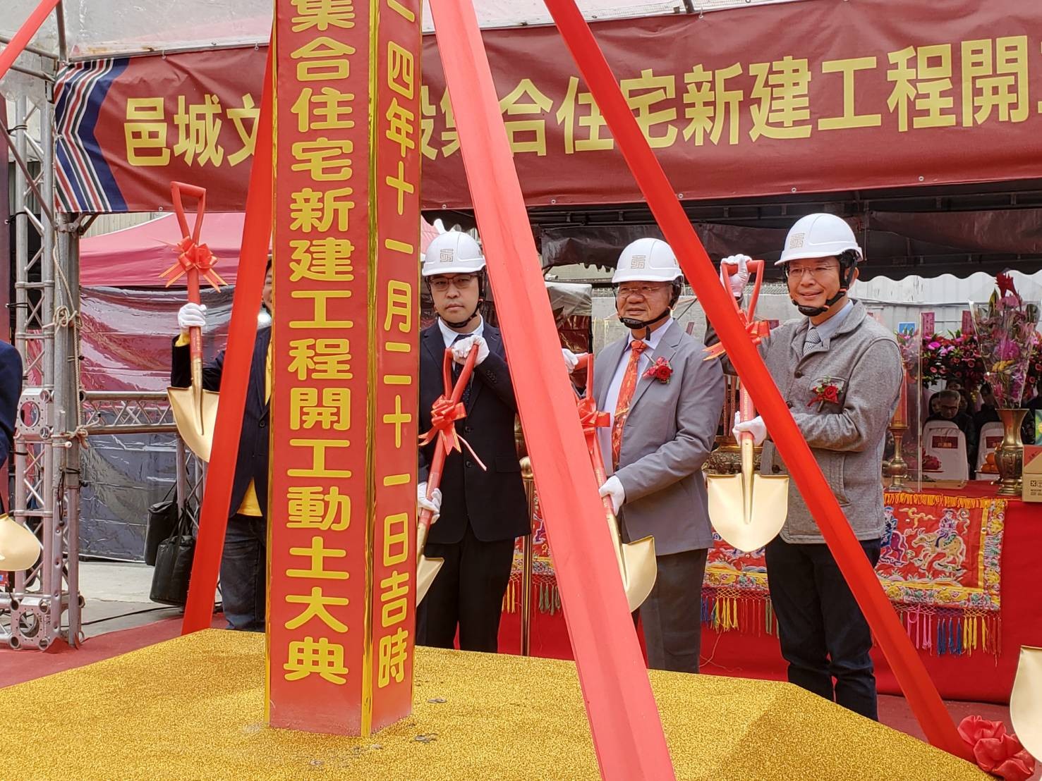 邑城建設在新北推出首案「邑城仰睦」2025年11月21日於三重老城心盛大動工,邑昇實業董事長簡榮坤和邑城建設總經理許淵勝執鏟。徐筱嵐攝