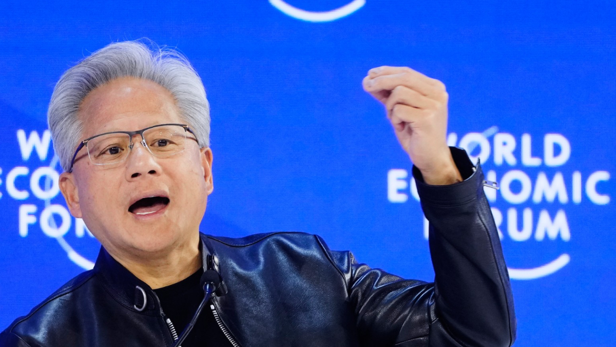 2026年1月21日,輝達創辦人兼執行長黃仁勳出席在瑞士達沃斯舉行的世界經濟論壇年會。美聯社