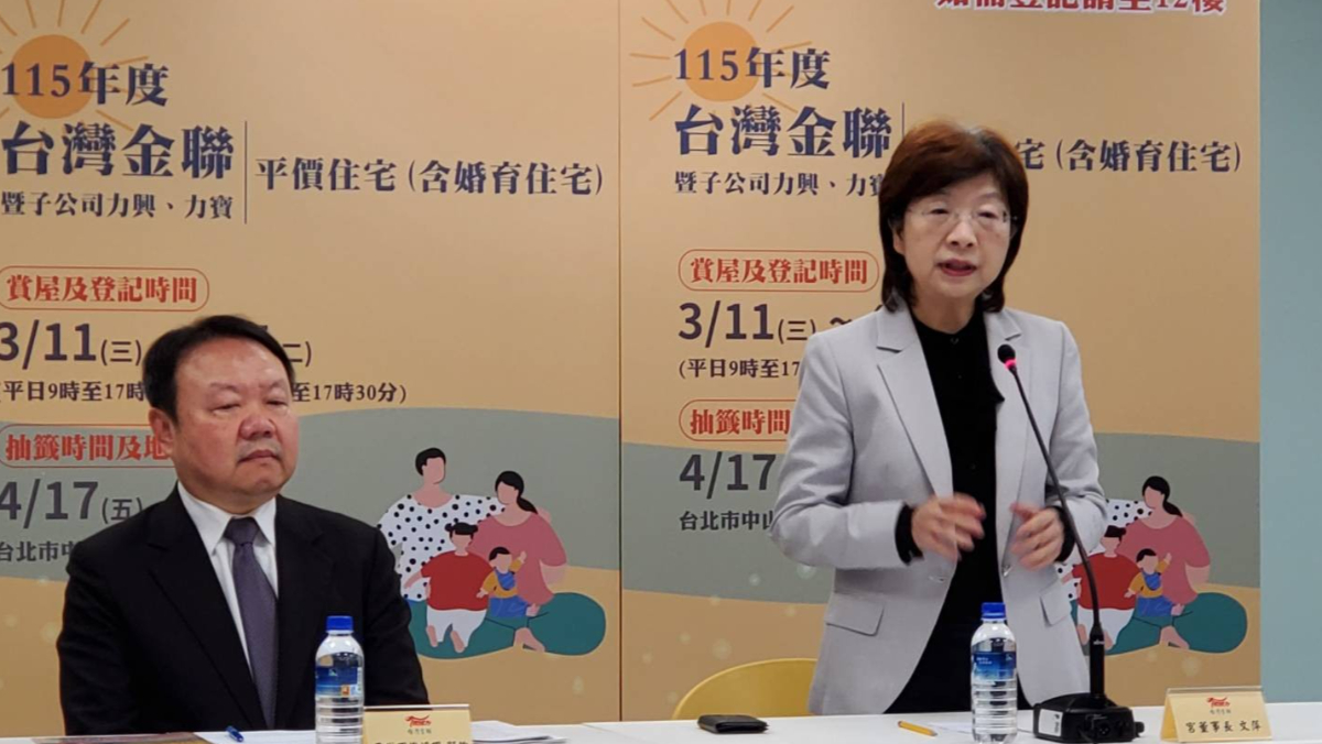台灣金聯董事長宮文萍今日召開記者會正式對外宣布,115年度「台灣金聯平價住宅(含婚育宅)銷售」活動即將啟動。宮文萍指出,今年活動係與子公司力興、力寶採聯合銷售方式辦理,提供婚育宅及平價住宅共100戶,以略低於市價約92折的固定價格,供民眾登記申購,主要物件集中在北北桃地區,約占47%;售價在1000萬元以下者,約占43%;最低總價物件位於台東知本溫泉區,原做為溫泉飯店使用之養生套房,售價123萬元,經濟實惠。