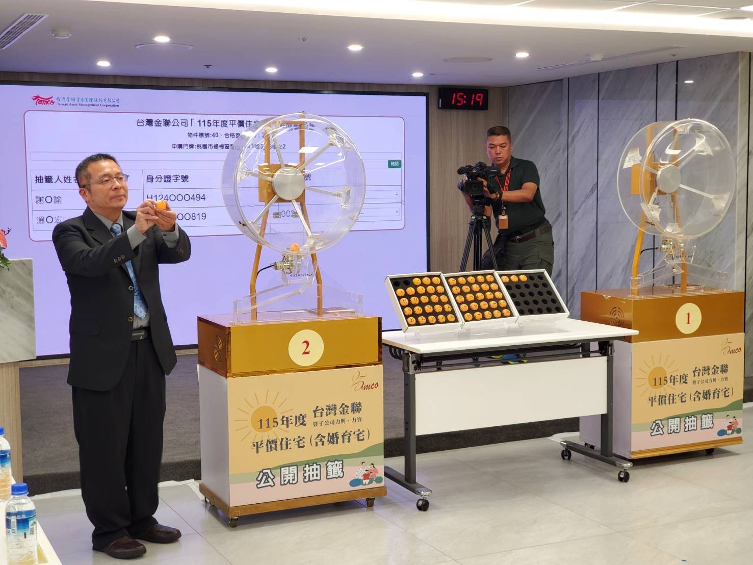 台灣金聯公司於2026年4月17日於台北總公司,在律師見證及全程直播下辦理平價宅公開抽籤。徐筱嵐攝