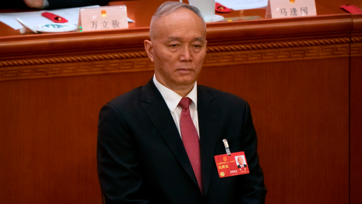 中共中央政治局常委蔡奇出席人大會議資料照片。美聯社