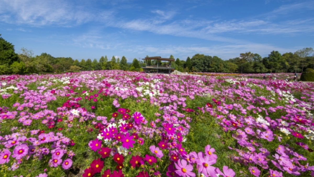 據廣島電視台與TBS電視台報導,廣島縣庄原市的「國營備北丘陵公園」,現在正值花季,在該園區的「花之廣場」,約有200萬株大波斯菊盛開。