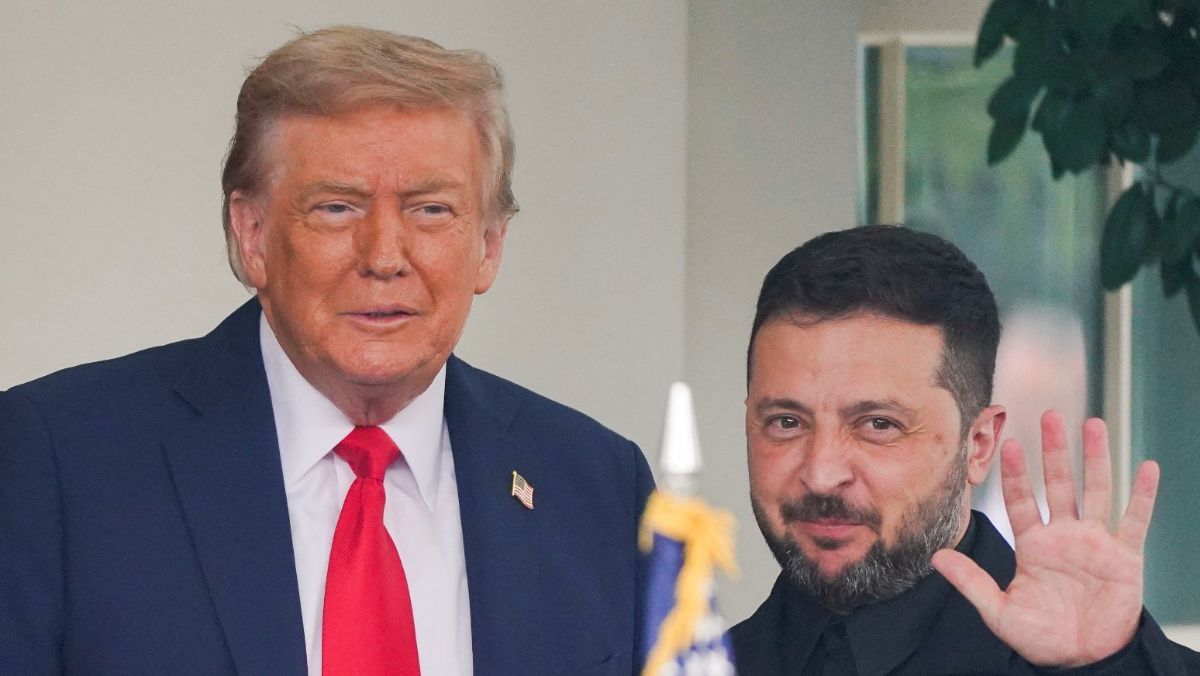 美國總統川普(左)8月18日迎接來訪的烏克蘭總統澤倫斯基。路透社