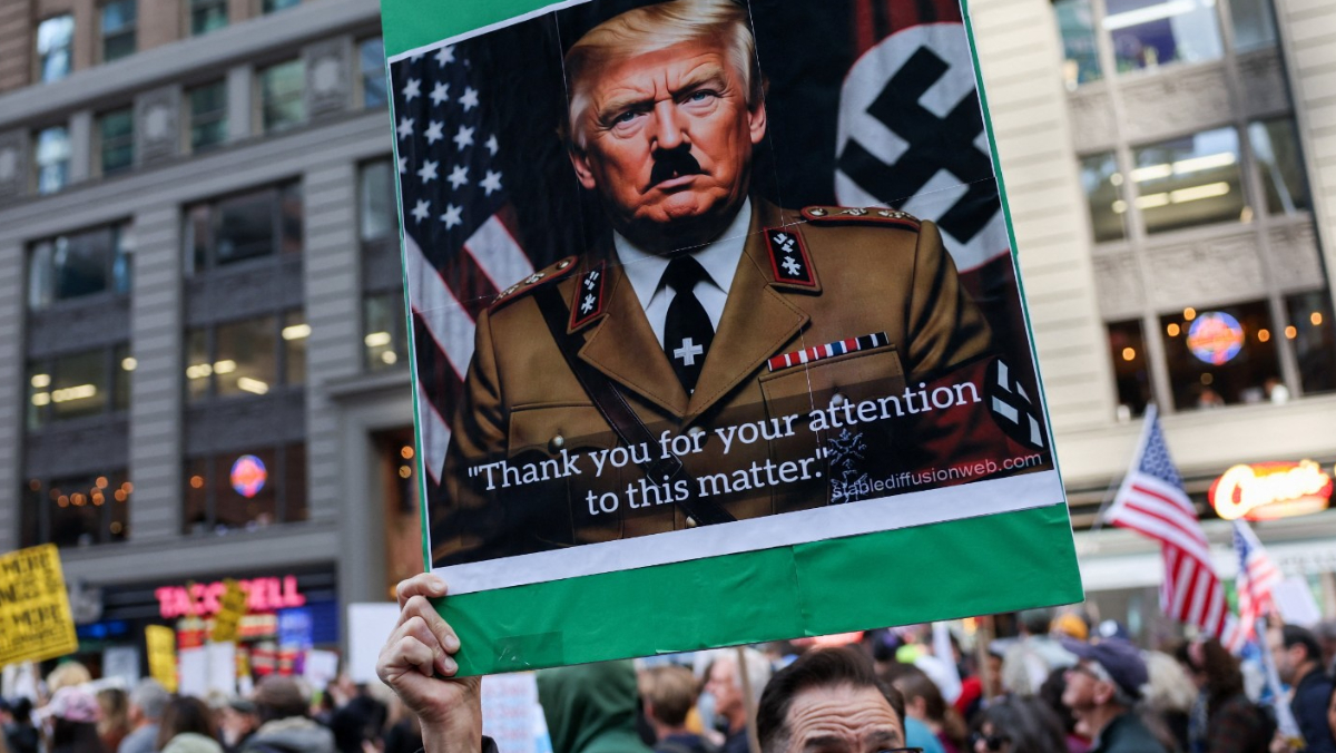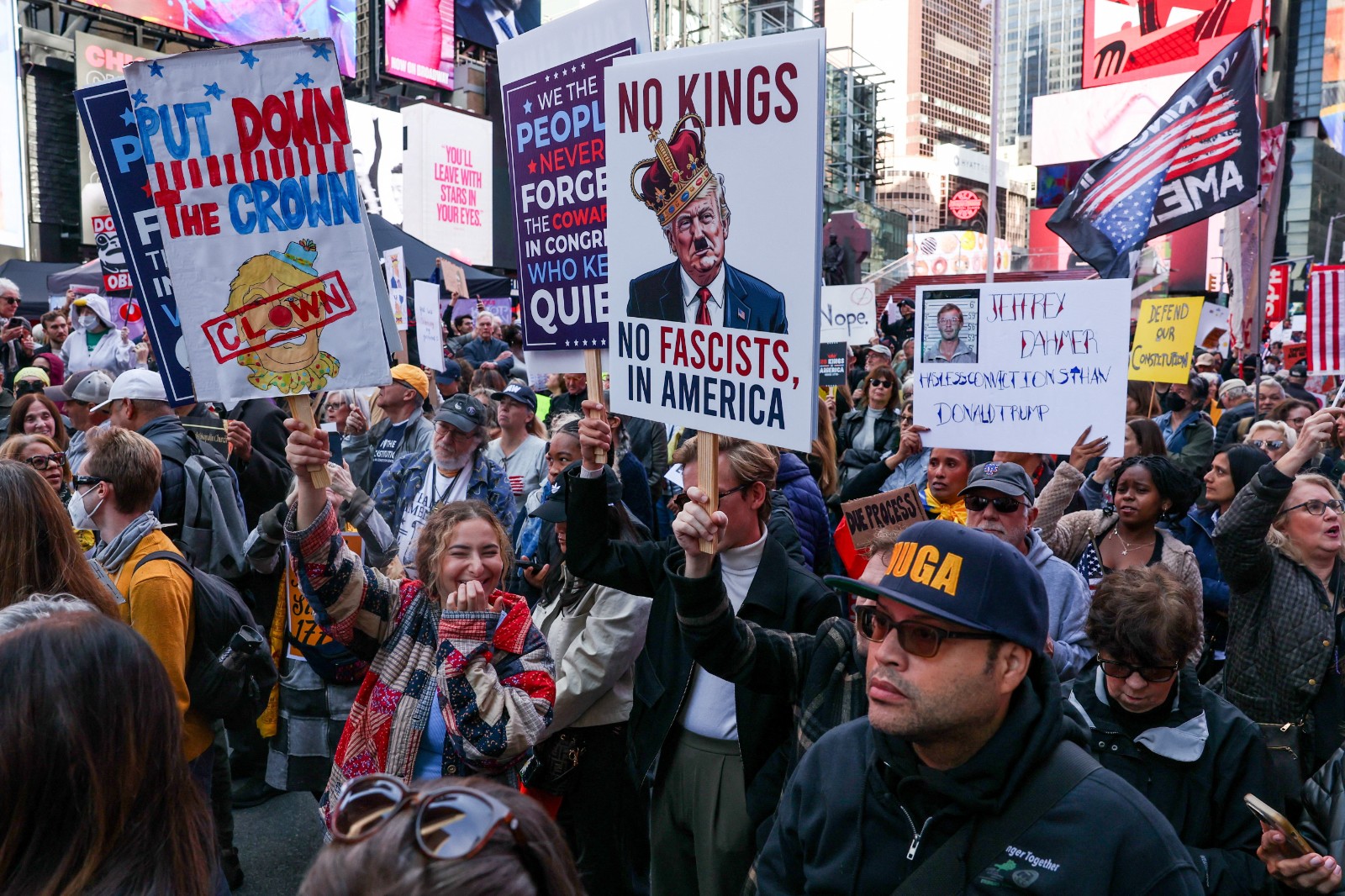 2025年10月18日,美國紐約時報廣場的無王日示威。路透社
