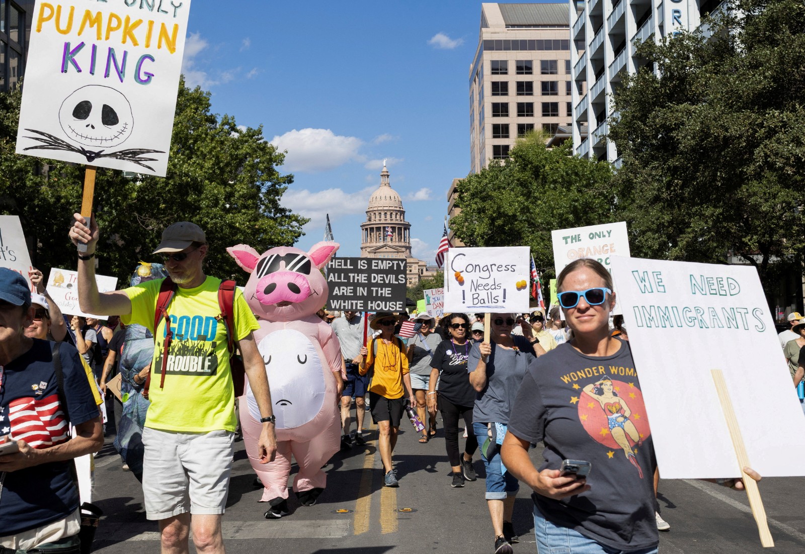 2025年10月18日,美國德州奧斯汀的無王日示威。路透社