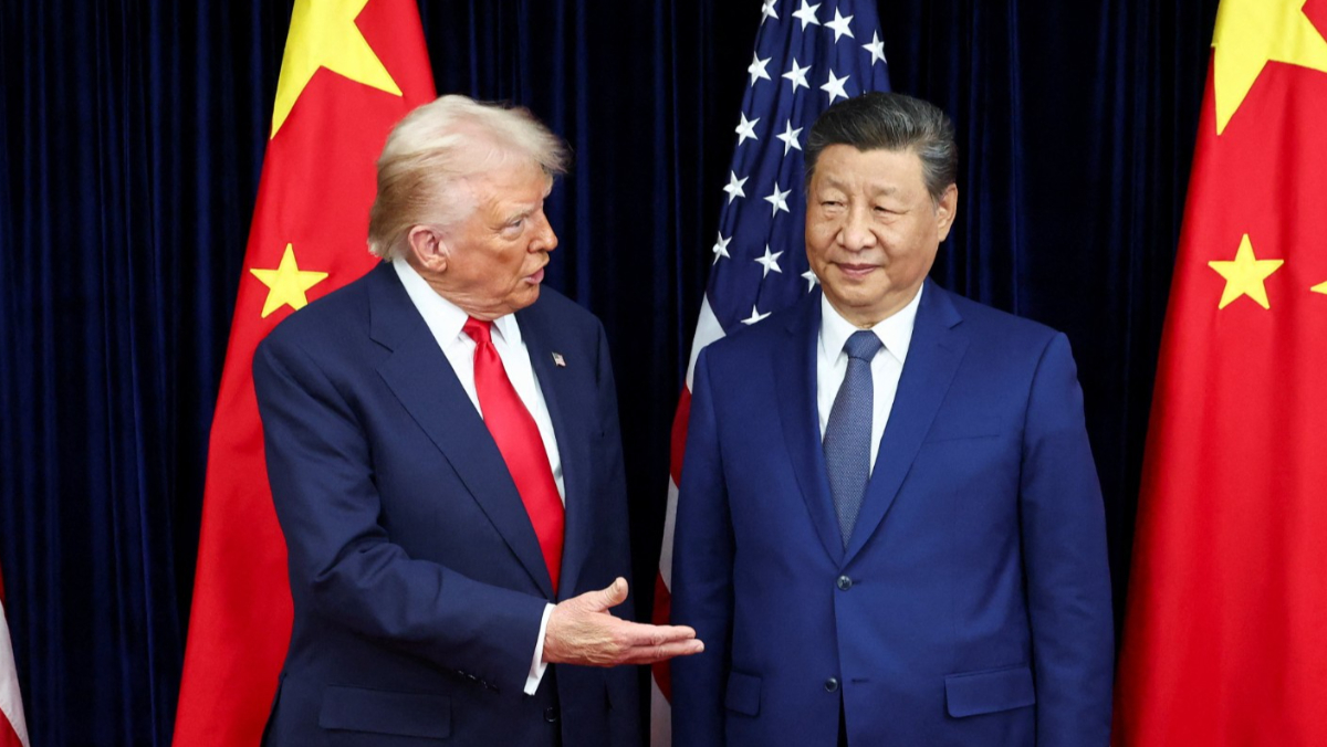 2025年10月30日,美國總統川普(左)與中國國家主席(右)於南韓慶州舉行APEC峰會期間在釜山金海國際機場會面。路透社