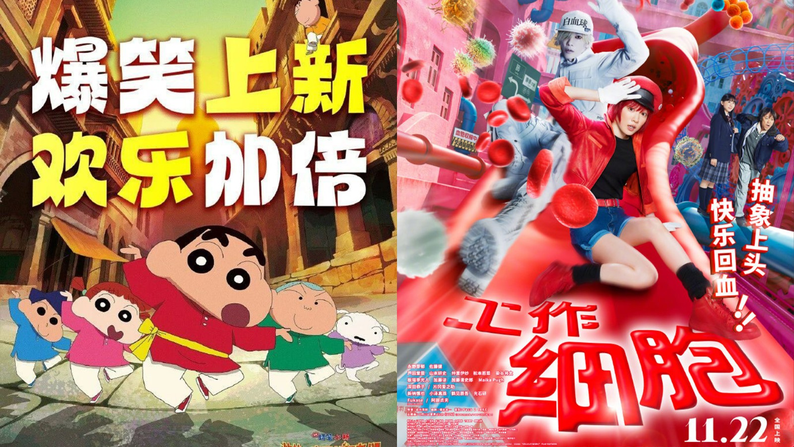 原定近期在中國上映的兩部日本電影《蠟筆小新:熾熱的春日部舞者們》(左圖)、《工作細胞》上週(11/17)傳出臨時遭撤檔。翻攝網路