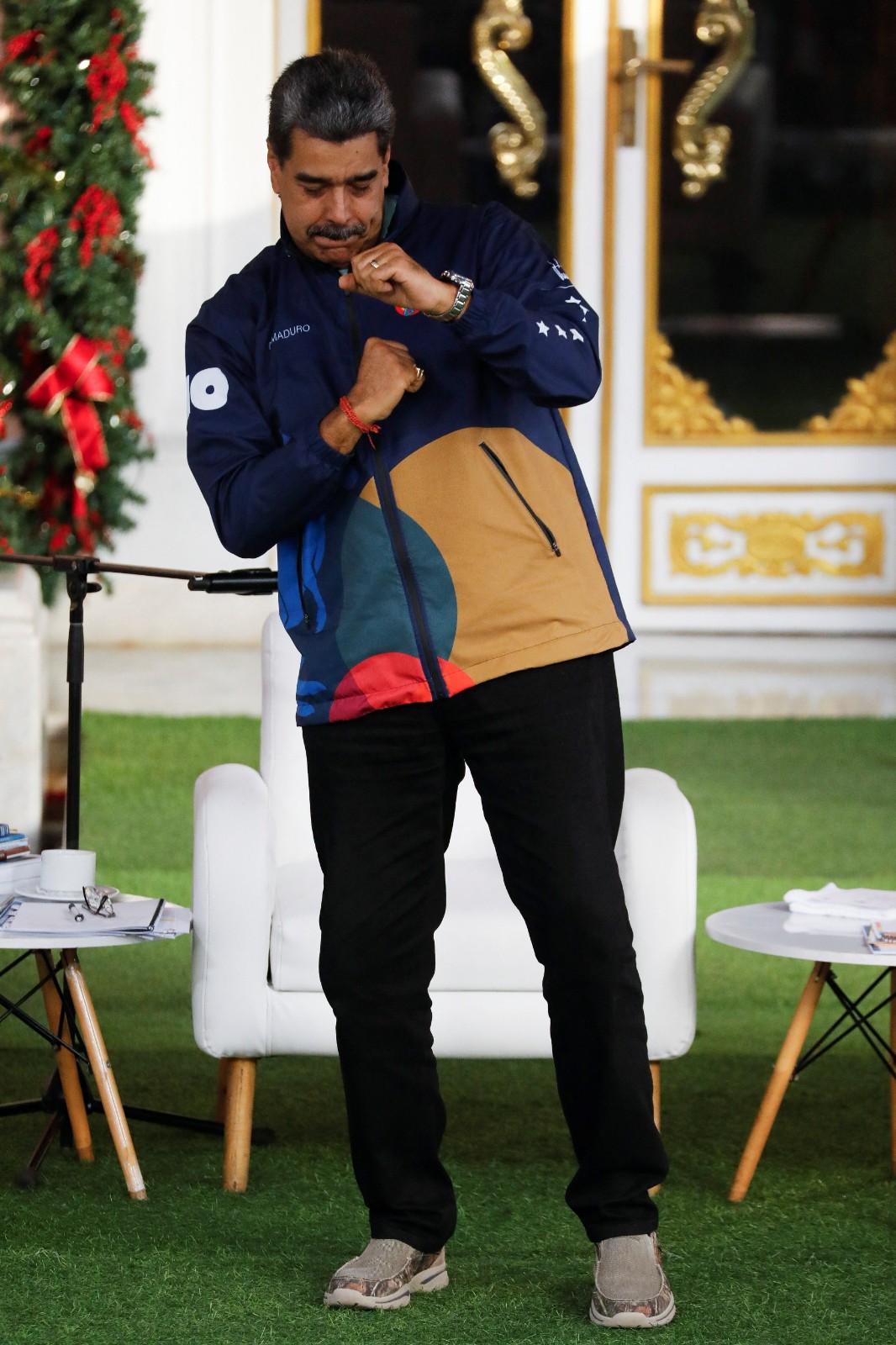 馬杜洛近日在公眾場合試圖淡化美國威脅,常無預警現身,對群眾精神喊話或手舞足蹈,週一(12/1)他「驚喜」出現在一場集會上發表演說:「週一開趴踢,週二開趴,週三週四週五雙倍開趴;週六3倍開趴,週日隨興開趴。趴踢到身體撐不住為止。沒有戰爭,只有和平。」