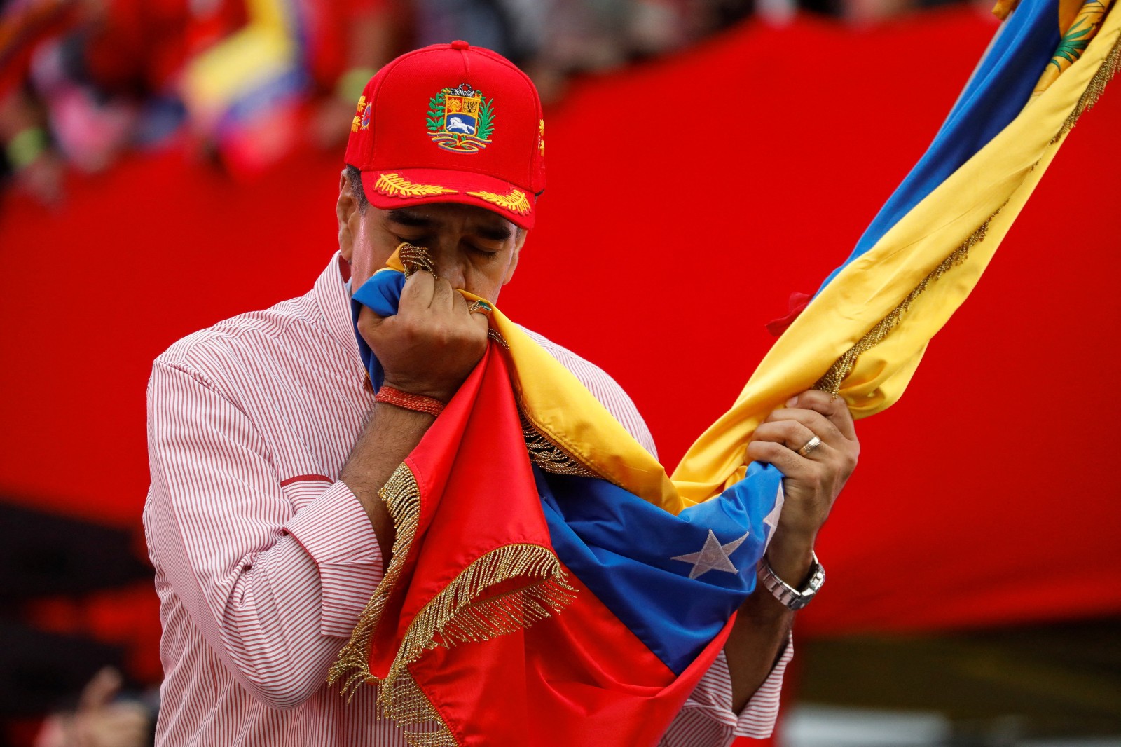 2025年11月21日,委內瑞拉總統馬杜洛在一場集會中手舞足蹈。路透社