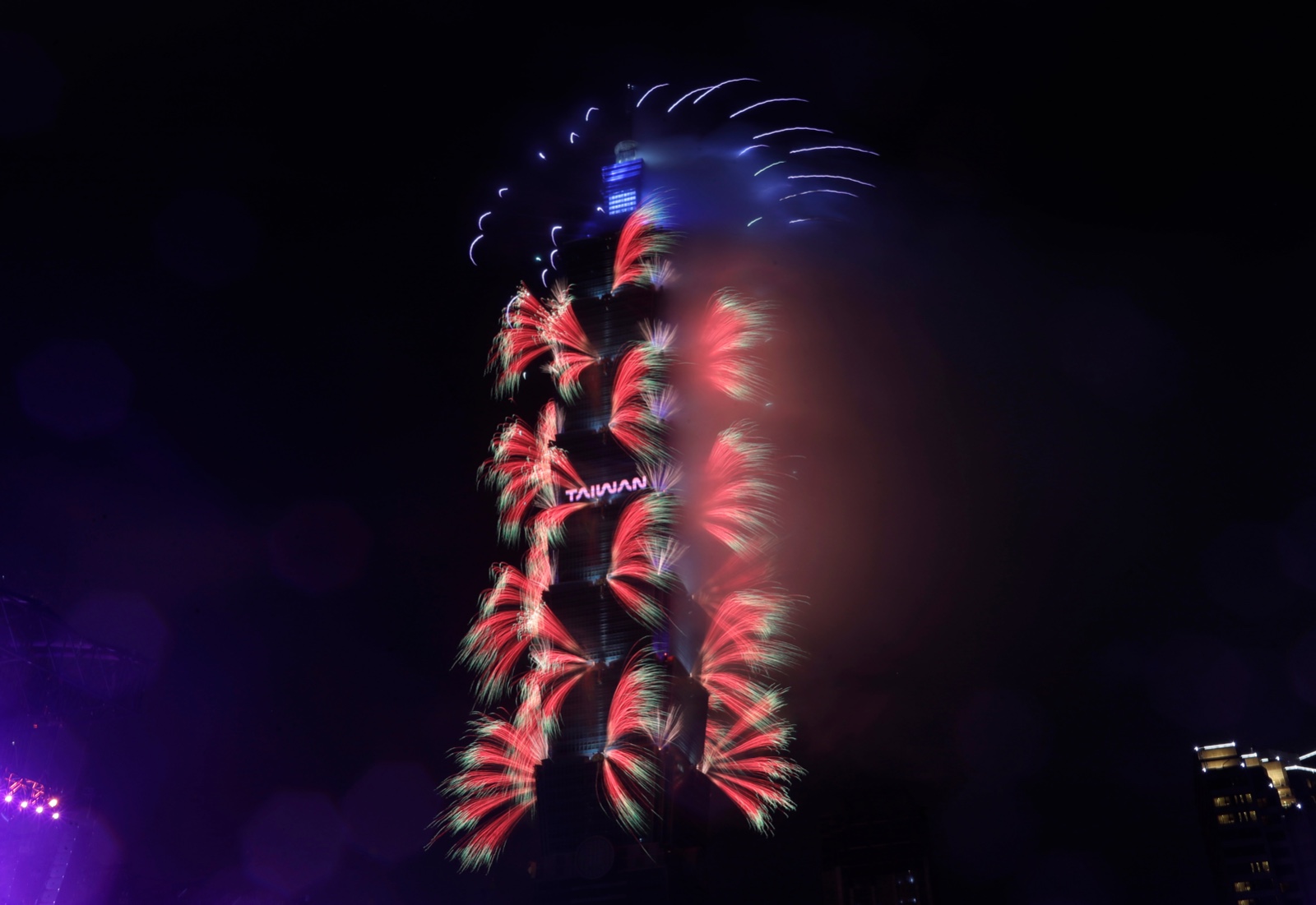 2026年1月1日,台北101施放以「我們的世代 Gen. TAIWAN」為主題的跨年煙火。美聯社