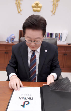 據《朝鮮日報》報導,南韓總統李在明今天上午,在社群平台X發佈一部影片,從畫面中可以看到,職員將「加入TikTok」的文件,放置在總統辦公桌上,李在明隨即將手指放在「加入欄」,表示自己開始使用TikTok。