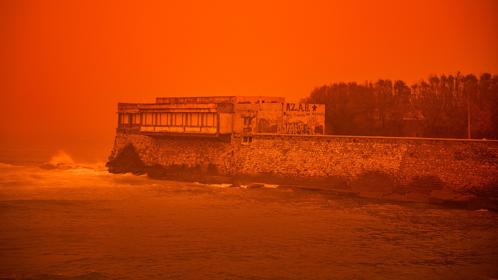 2026年4月1日,希臘克里特島南部,沙塵暴使天空呈現橘紅色。美聯社