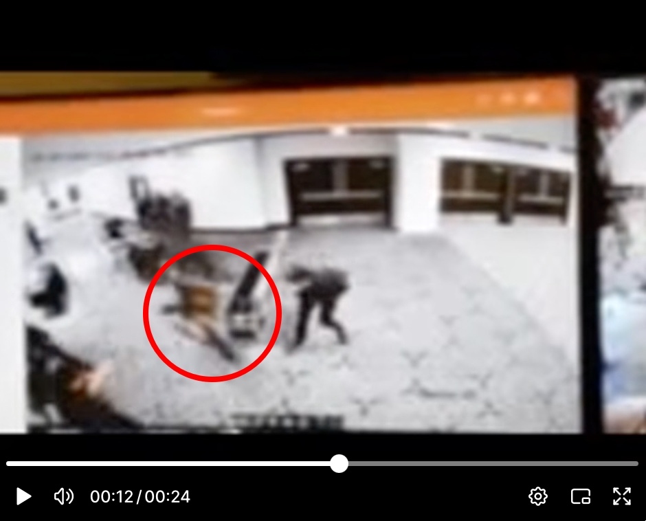美國總統川普發布槍手艾倫衝過特勤局安檢站的監視影片,之前關著的門已打開(紅圈處),支援的特勤衝出。翻攝Truth Social@realDonaldTrump