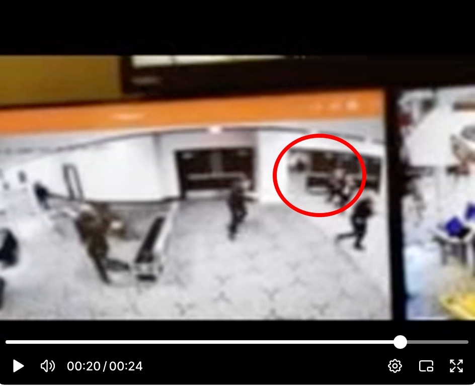 電光石火一瞬,特勤似乎無法在第一時間反應,未強力阻攔,直到他衝過安檢站,特勤才拔槍朝他離去方向戒備,一旁本關著門的門也忽然打開,其他特勤衝出支援。