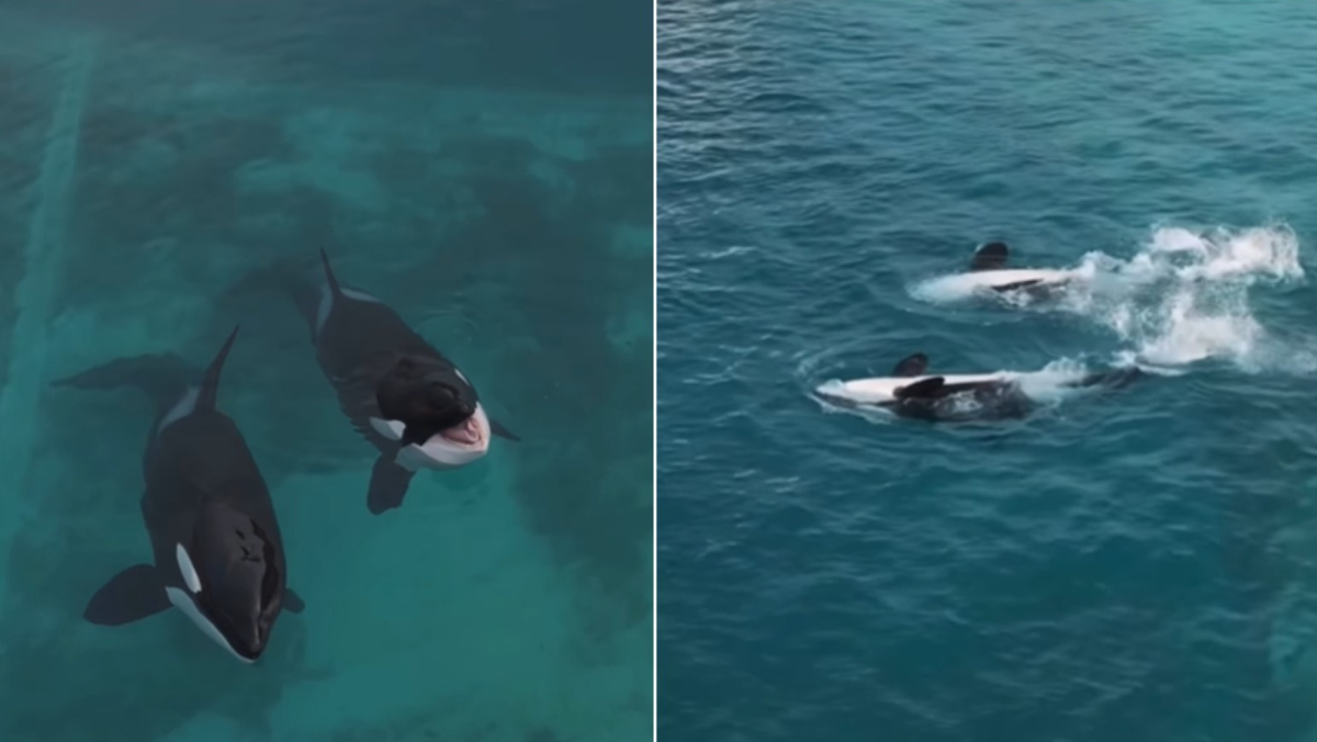 美國攝影師約瑟夫・勞倫斯(Seph Lawless)近日用無人機拍到位於法國南部的「安提布海洋世界(Marineland Antibes)」內,兩隻被遺留的虎鯨母子,到現在仍被困在荒廢已久、污濁不堪的水池裡。令人鼻酸的是,牠們聽到無人機聲響後竟開始表演轉身、躍起的動作,像是重拾曾經被人注視的記憶,畫面在網路上瘋傳,讓全球網友為之動容。