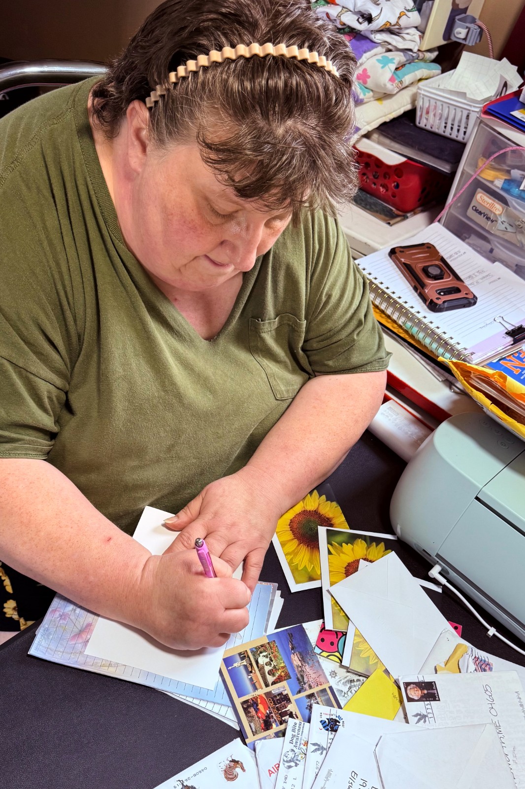 參加臉書卡片俱樂部的比莉喬,每個月手寫100張賀卡寄出。美聯社