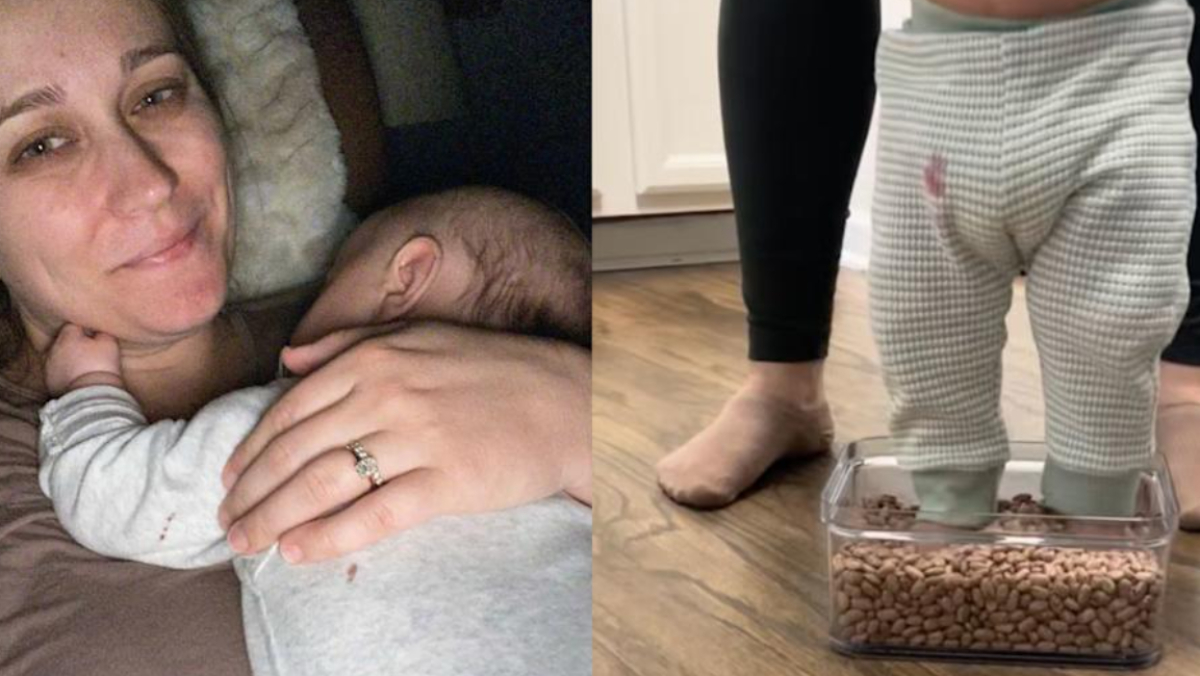 一名美國媽媽因育兒地獄,因此將兒子雙腳放入豆子,沒想到收到奇效。翻攝X