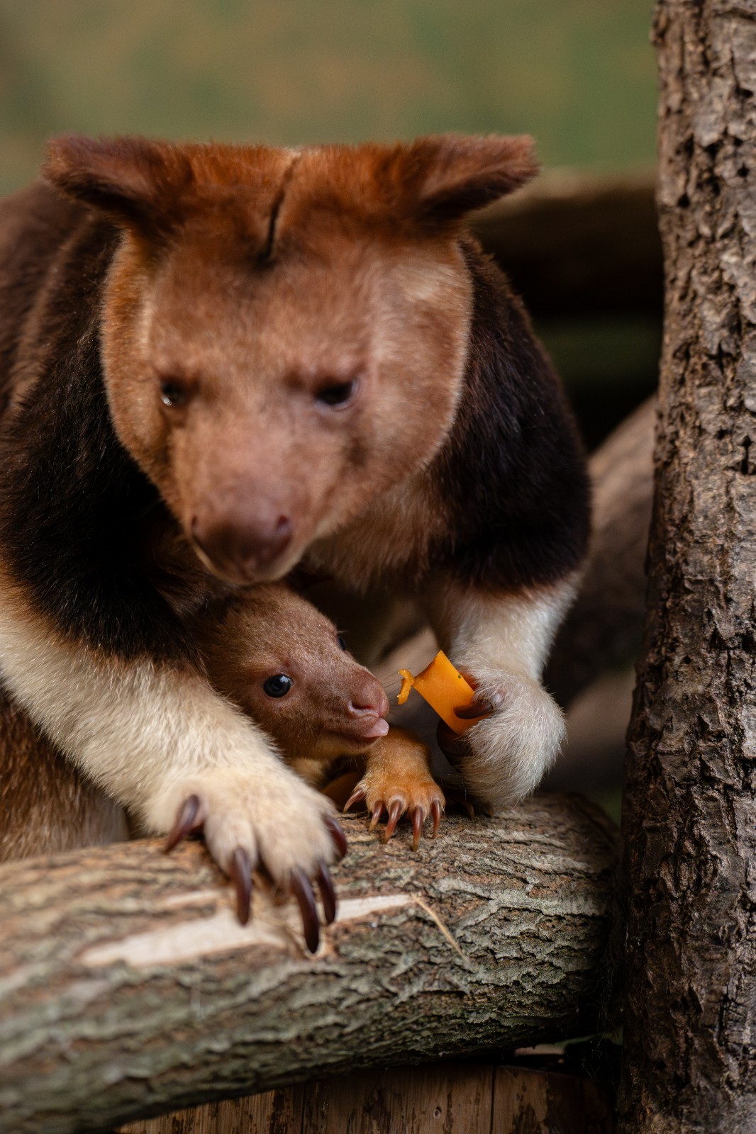 英國切斯特動物園中的樹袋鼠寶寶,已經從媽媽的育兒袋中探出頭了。圖片提供:切斯特動物園Chester Zoo