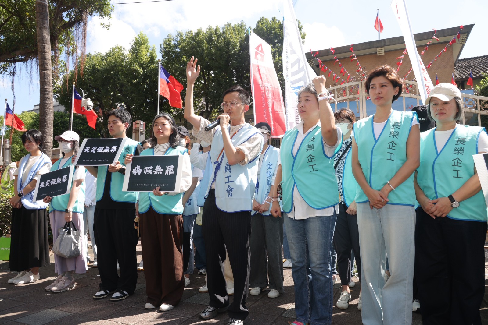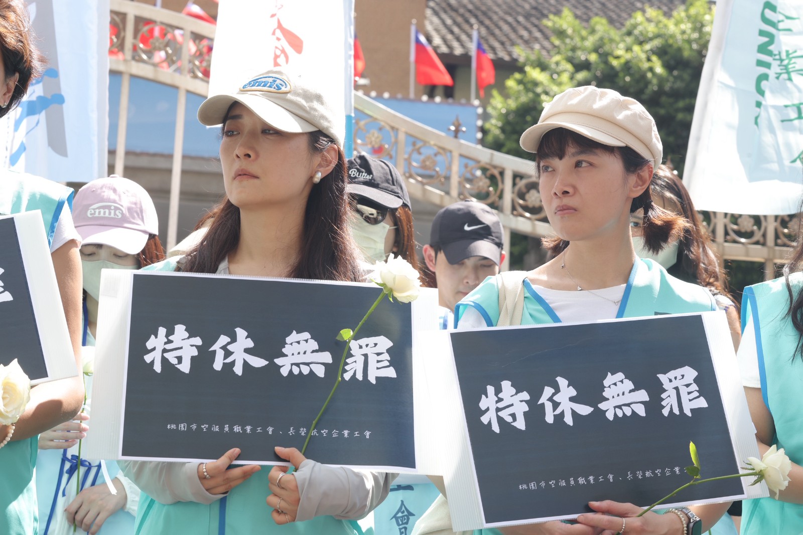 桃園市空服員職業工會、長榮航空企業工會「請立院修法保障員工請假權益、禁止病態的企業文化」聯合記者會。李政龍攝