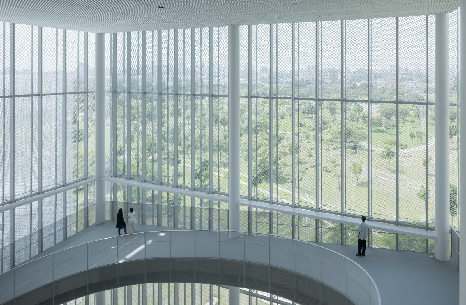 台中綠美圖由 SANAA 事務所妹島和世與西澤立衛打造,打破傳統美術館與圖書館界限,成為知識與美學交融的文化基地。開館首展「萬物的邀約」從水湳機場轉型中央公園的地景脈絡出發,透過五大子題描繪城市與自然的多重關係。