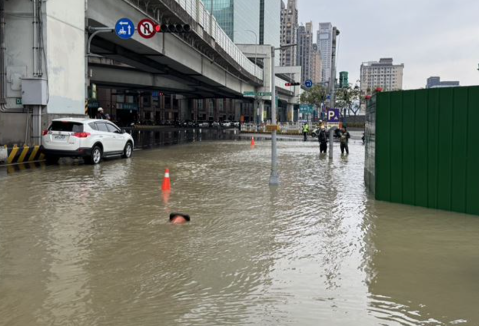 新莊警分局今天上午11時許接獲通報,養工單位在新北大道與五工路口開挖天橋地基施工時,疑似不慎挖斷自來水主要幹管,導致自來水外洩、水管破裂,造成路面嚴重積水,影響周邊交通安全。