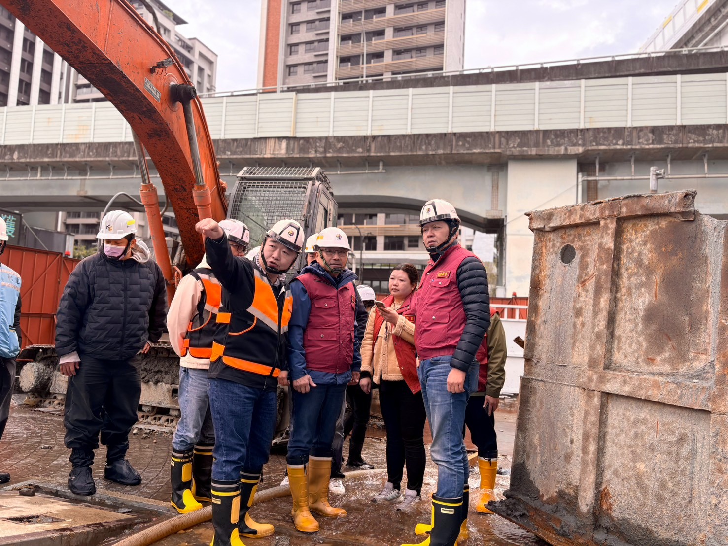 目前影響將近上萬戶。新北市長侯友宜也到現場視察,侯友宜表示已經指示分局、交通單位全力備戰。從現在開始到明天所有的復工完畢,所有的警力都會在現場,並且隨時告知民眾路況。預計如果順利的話,希望能夠在明天早上能夠順利搶修完成。這個管線有供水到五股產業園區以及部分住戶,希望能夠在明天早上順利的入供水,影響範圍就會很小,我們盡全力搶修。