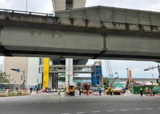 新北新莊區新北大道,因事故施工交通管制。新北市府提供