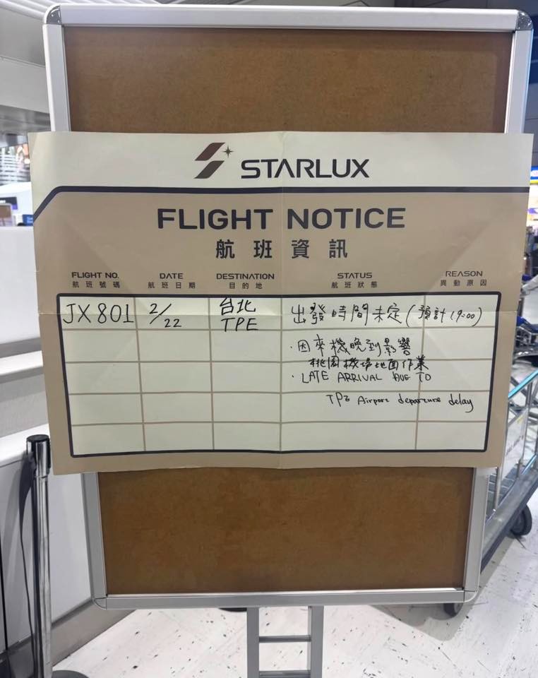 一名從東京搭機的乘客在網路上抱怨,星宇方面沒有任何簡訊、Email通知,在機場也沒有廣播說明,一家人開車抵達機場準備托運行李時,才發現小小告示牌,工作人員也沒有主動告知。