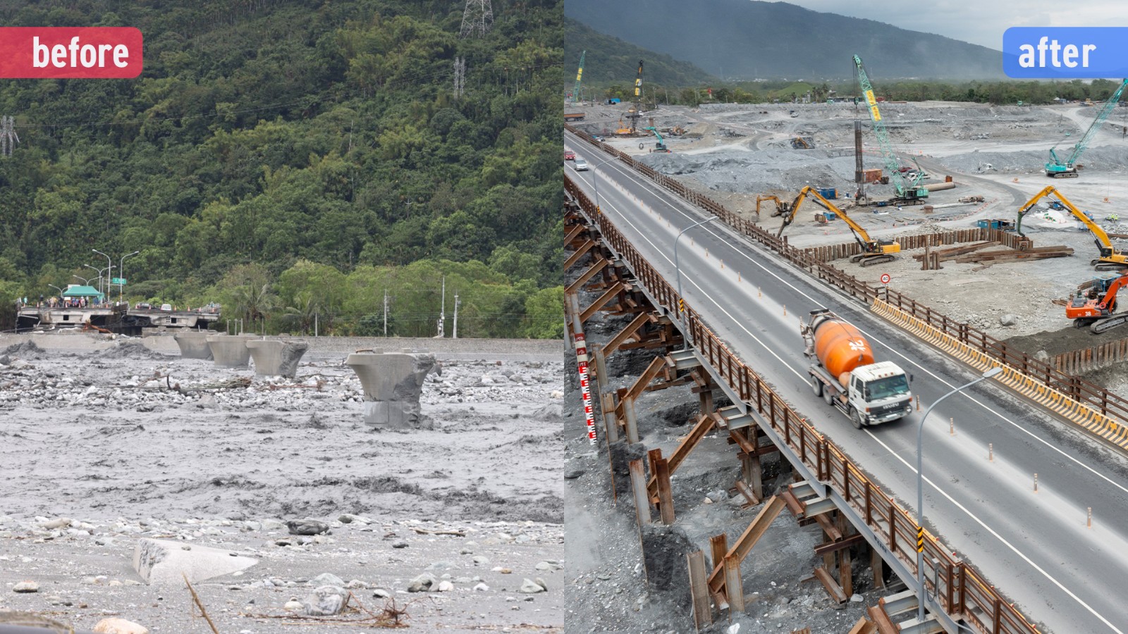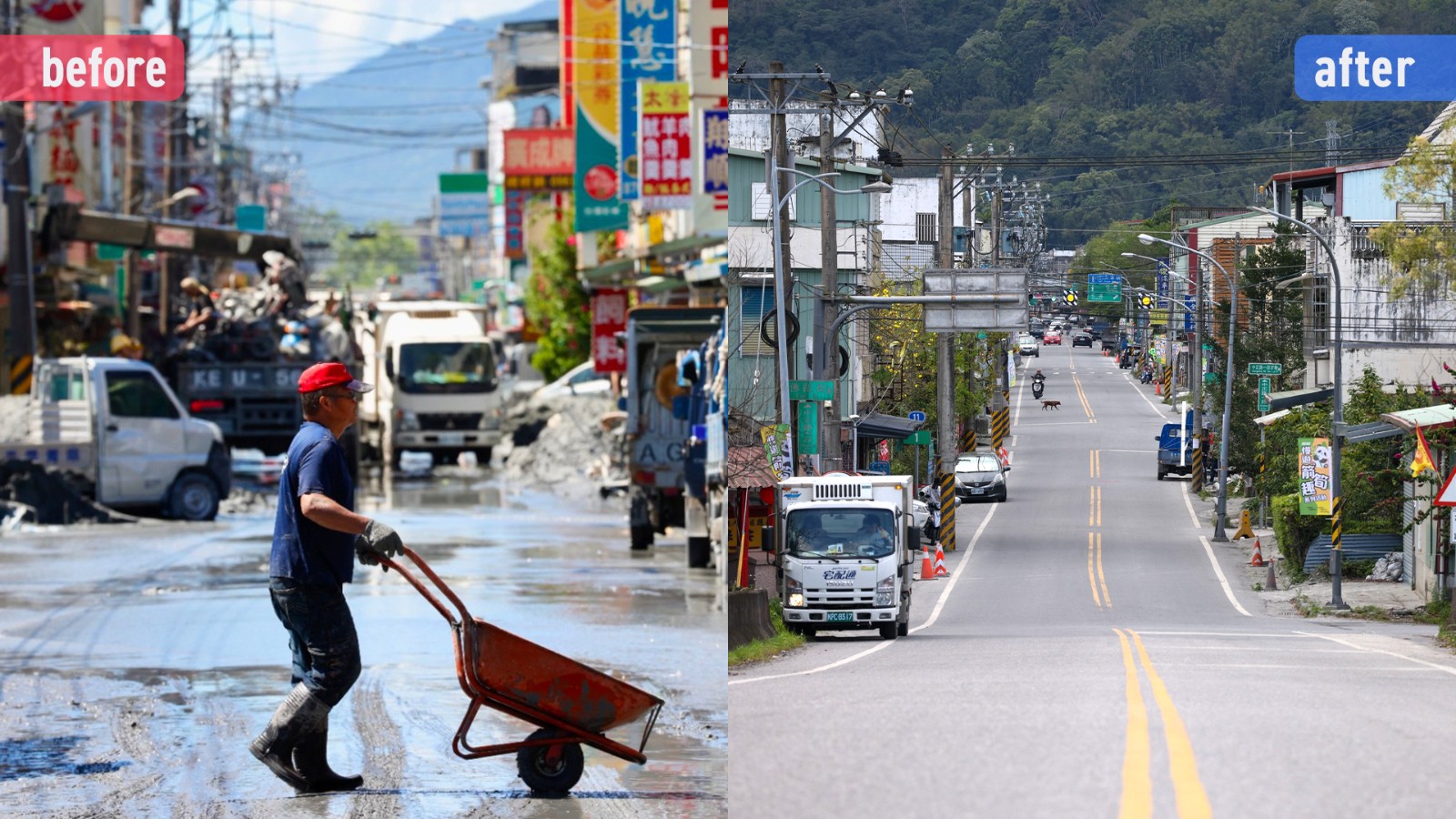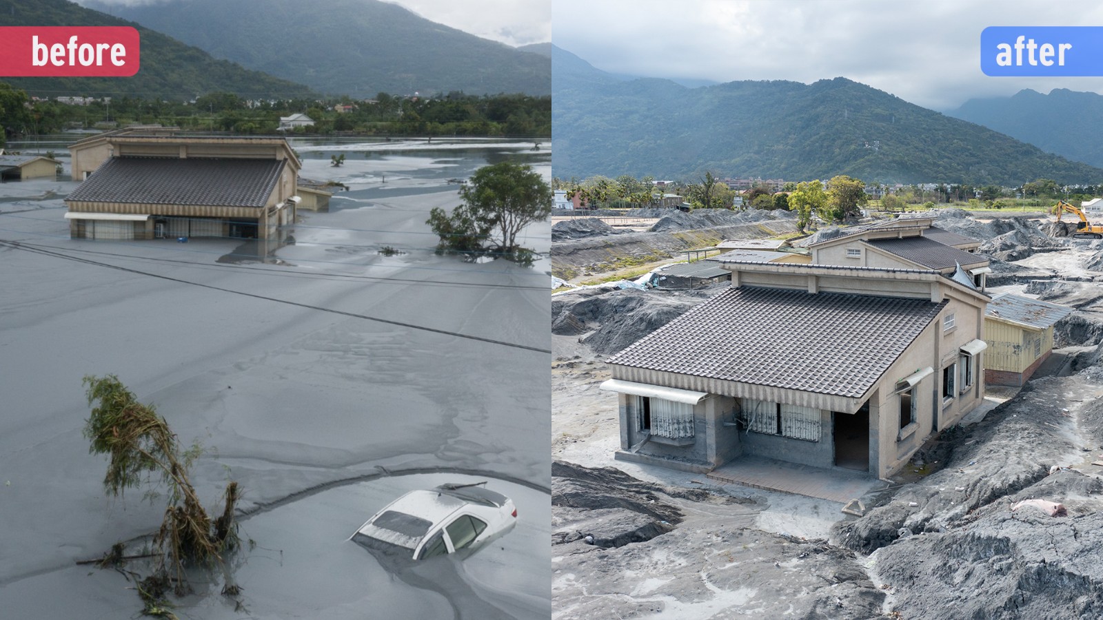 《太報》記者於災後第二天赴現場記錄救災,半年後重返光復勘查重建進度,並運用「Before & After」作對比呈現,祝福這塊純樸幽靜之地能早日安定下來。