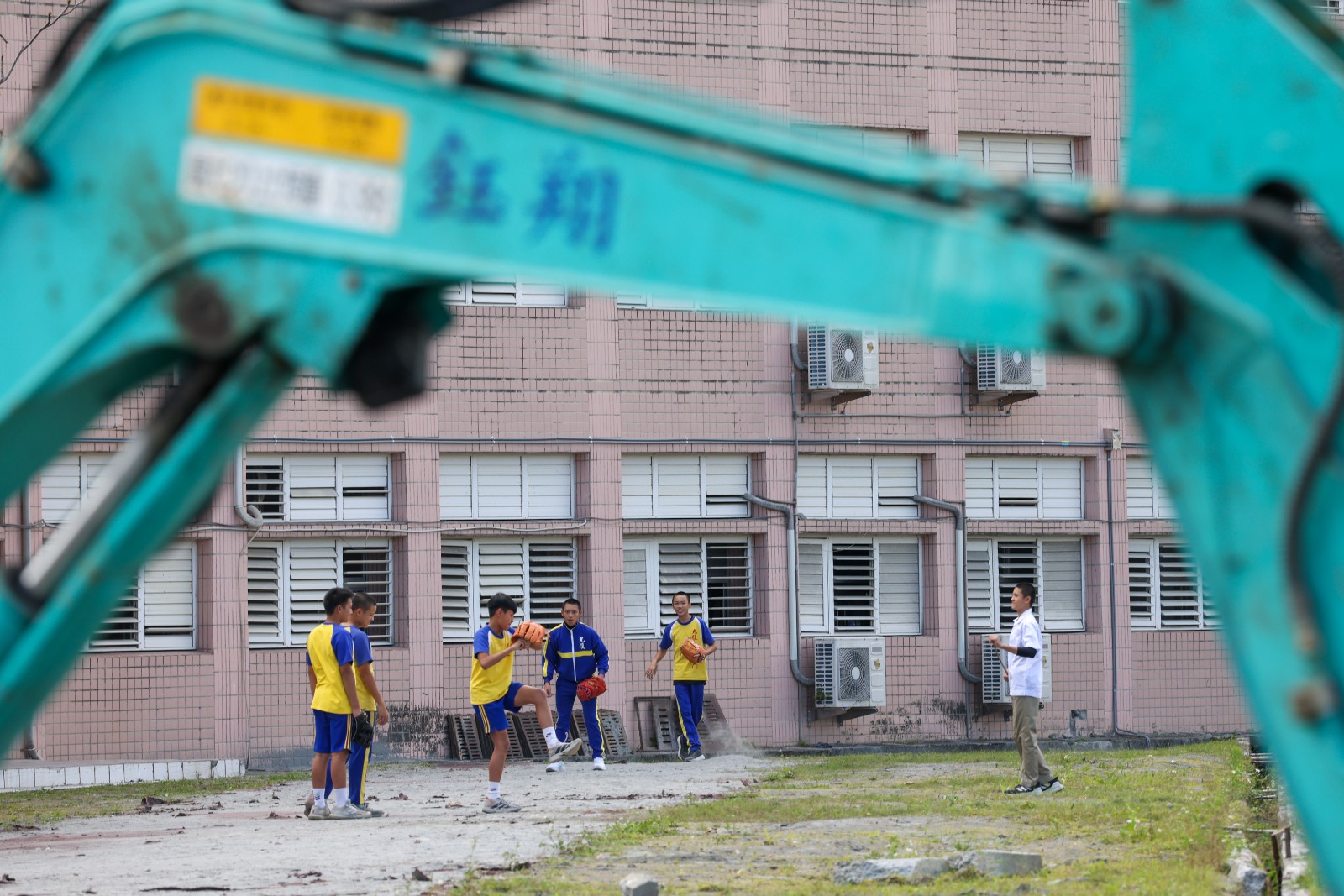 光復國中學生趁下課10分鐘跑到操場打棒球,操場還未完全整理完。廖瑞祥攝
